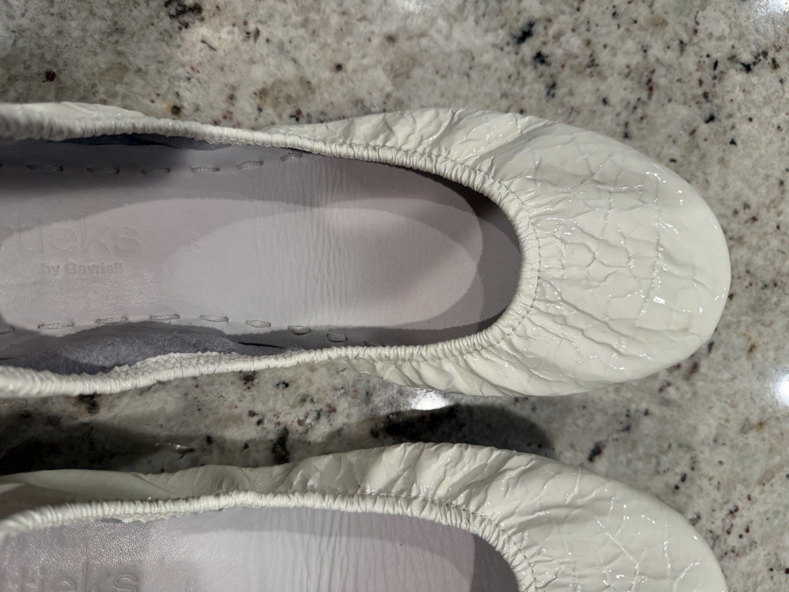 Tieks Diamond White Croc Leather Ballet Flats Size 8 EUC Patent