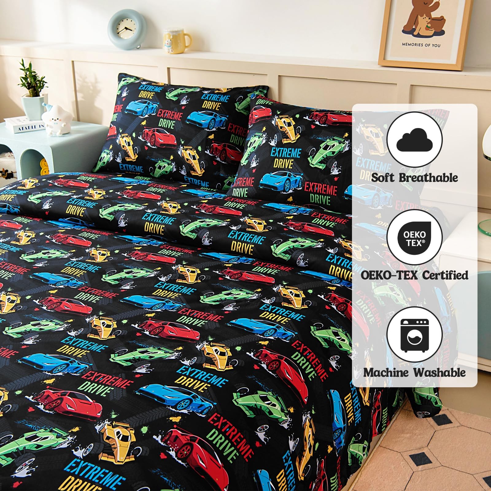 MCO Twin Sheets Set Kids, Soft Microfiber Bed Sheet Set for Boy Girls, 3 Piec...