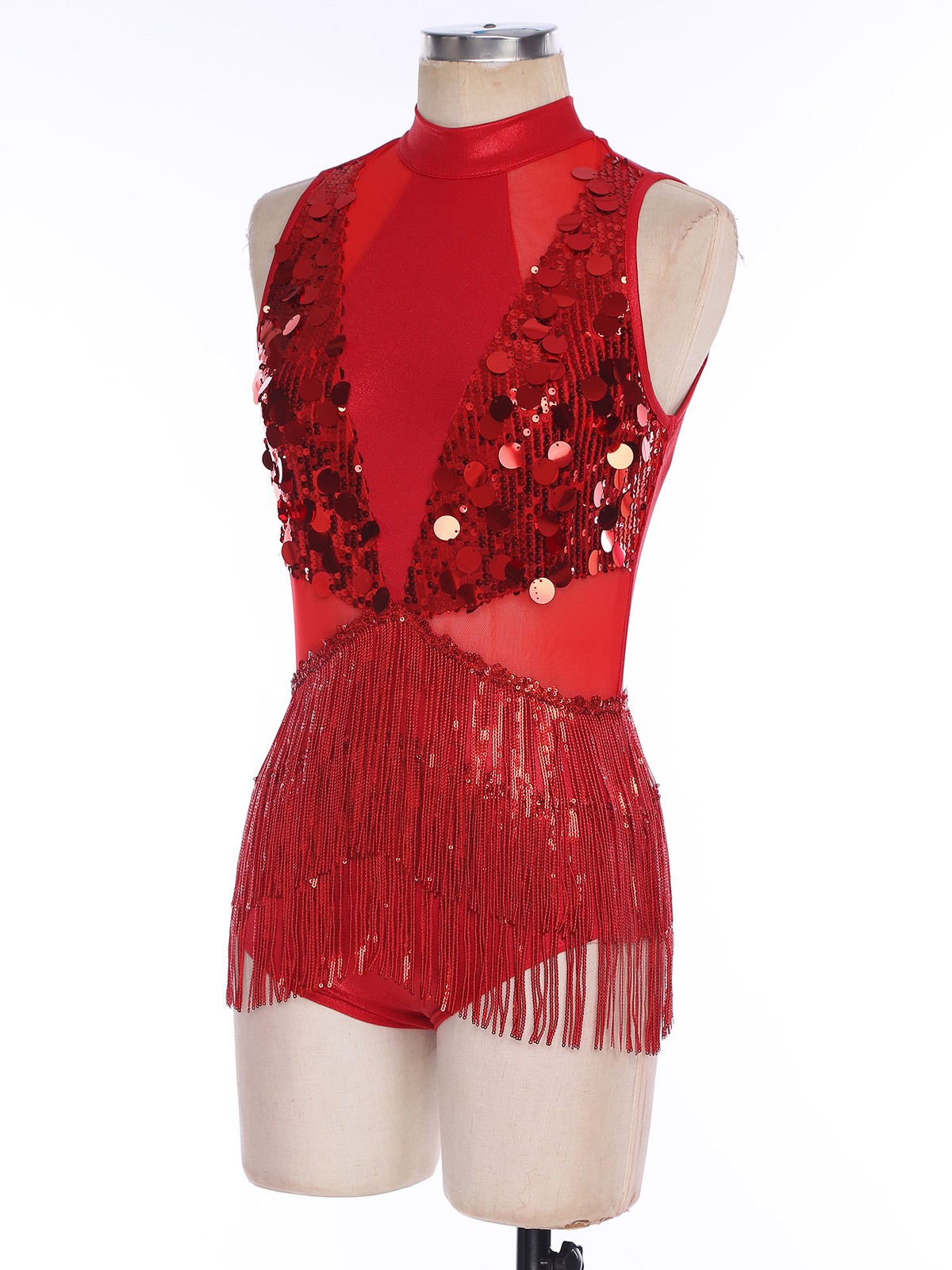 Women Ballet Dresses Sleeveless Turtleneck Backless Dance Dress Fringe Skirt