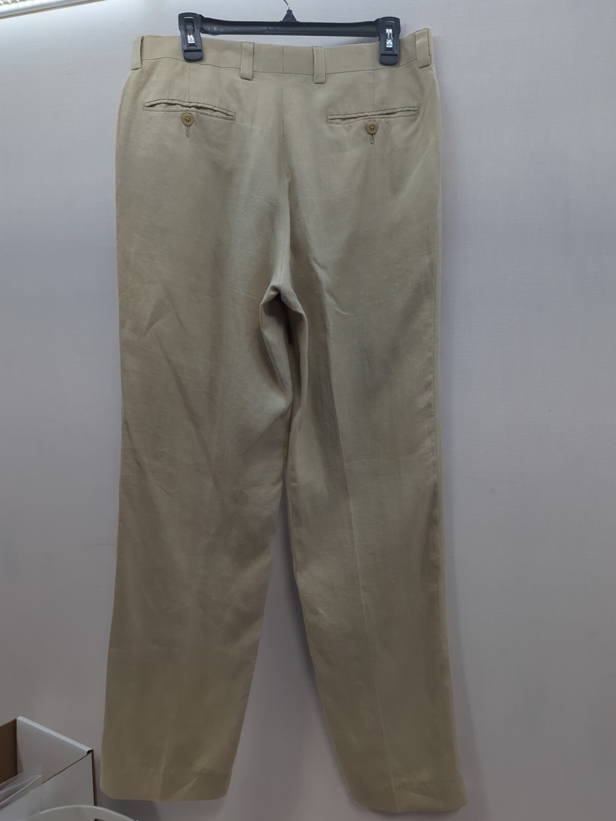 как выглядит CALVIN KLEIN 100 Linen Tan Dress Pants Flat Front Mens Size 33x32 фото