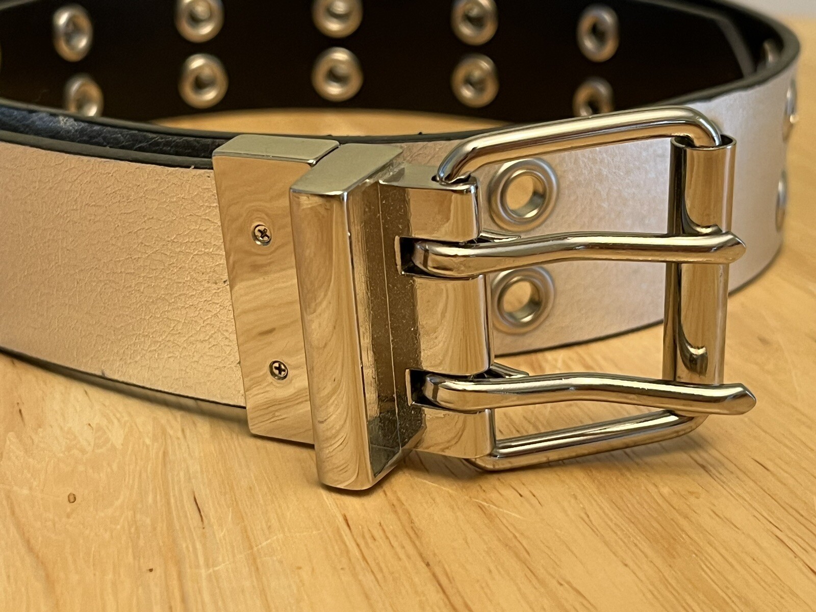 как выглядит Vtg Womens Boho Leather Metallic Silver Studded Belt Size 39 фото