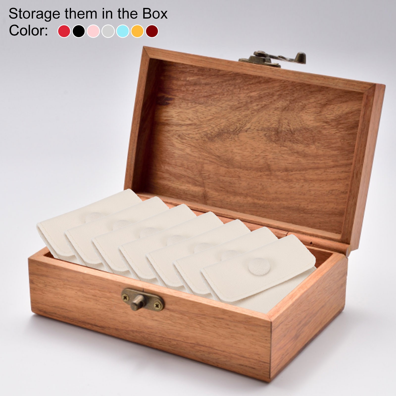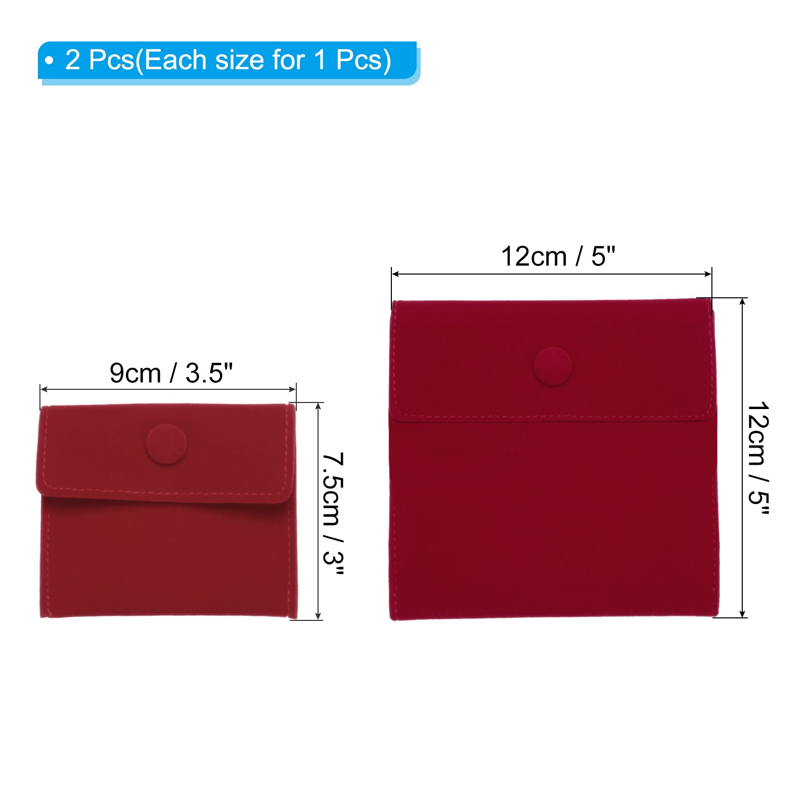 2Pack 2 Size Jewelry Pouches, Velvet with Snap Button for Rings, Red