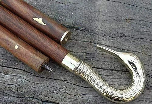 Antique Swan Style Brass Handle Vintage Wooden Walking Stick Cane Handmade Style