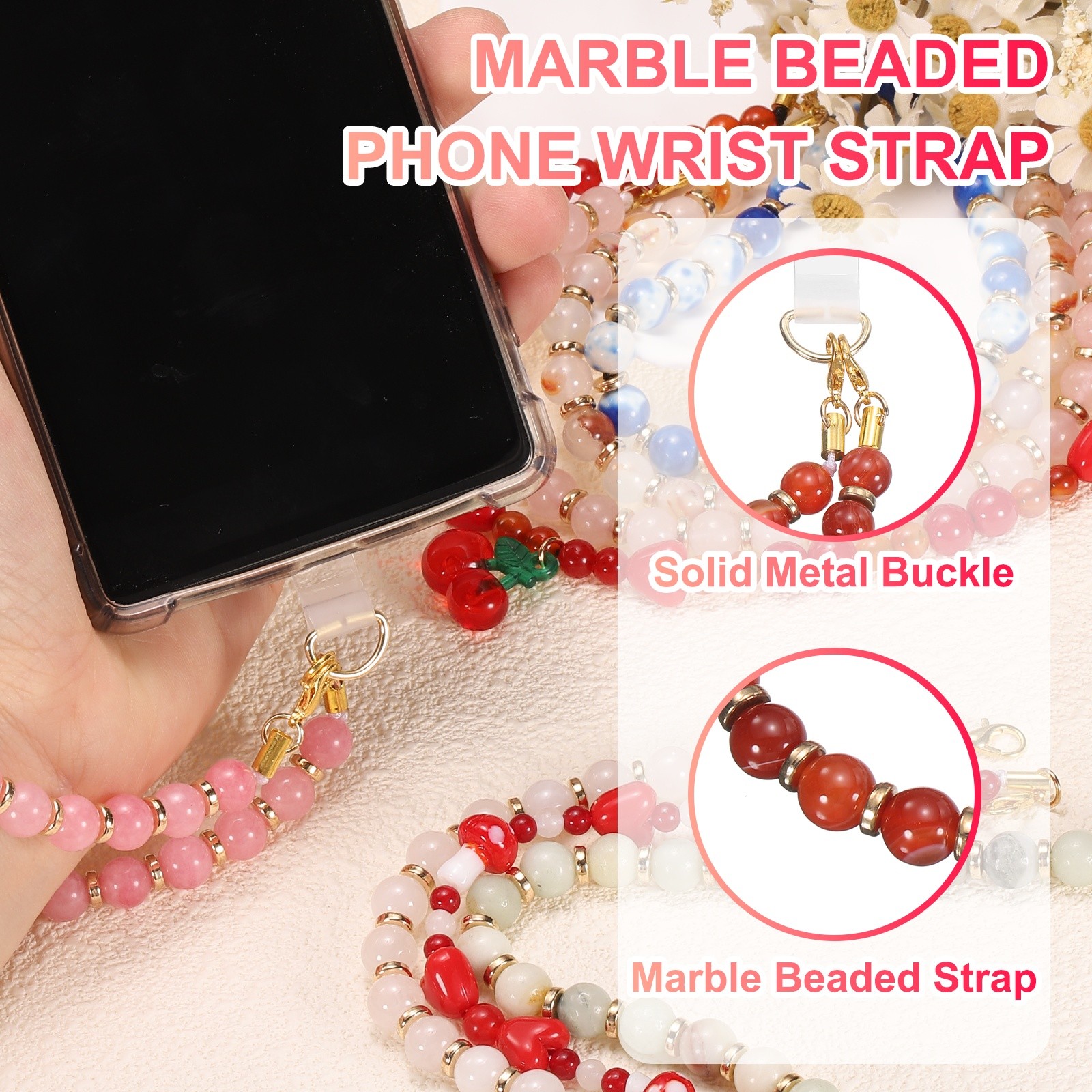 как выглядит Marble Beaded Phone Wrist Strap, Cellphone Lanyard with Tether Tab, Red Zebra фото