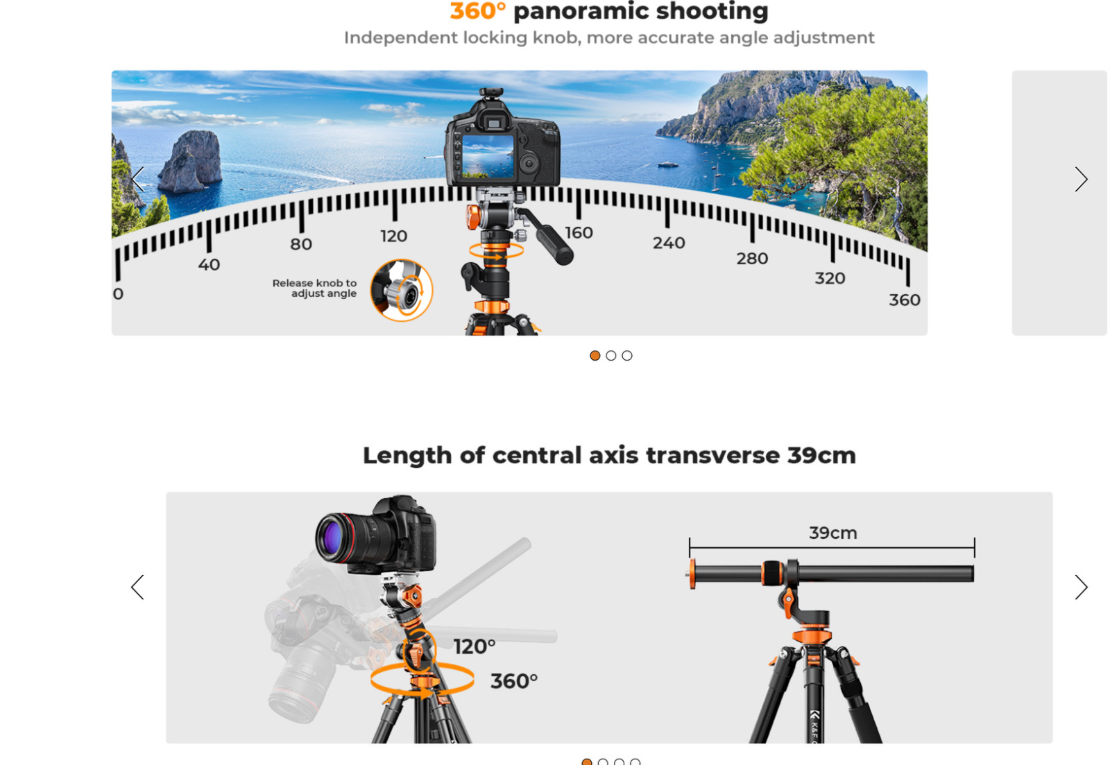 как выглядит K F Concept 90in Ultra High Camera Tripod Horizontal Overhead fr DSLR/Mirrorless фото