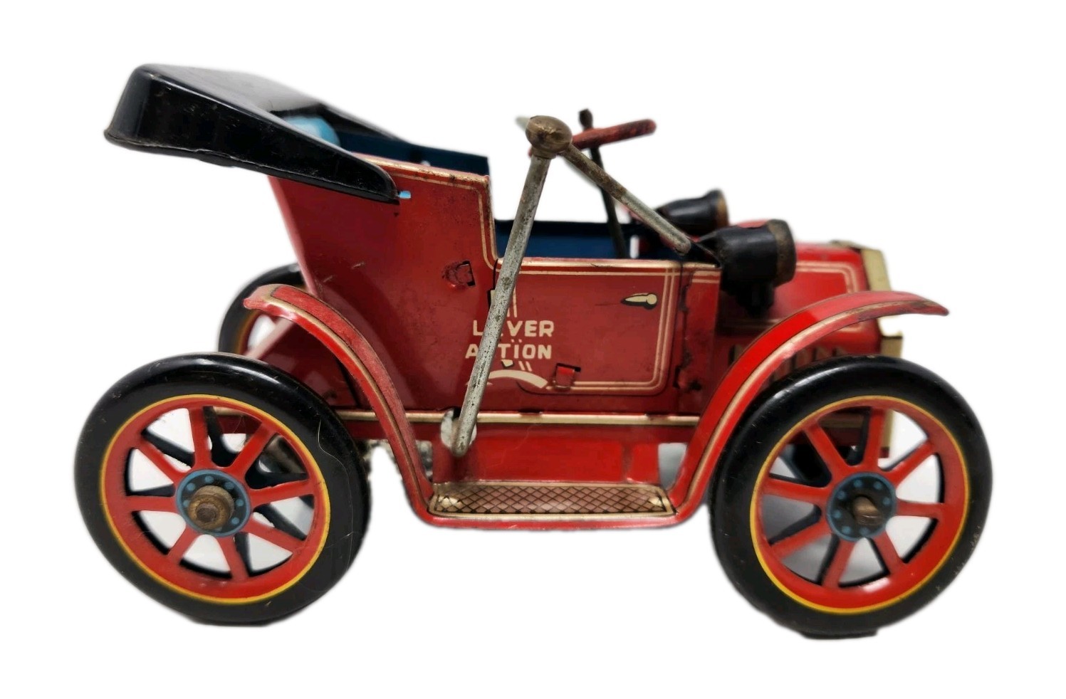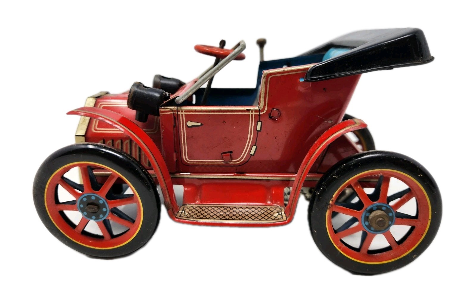 Vintage Trade Mark TM Modern Toys Lever Action Tin Friction Car Does Not Wind Up