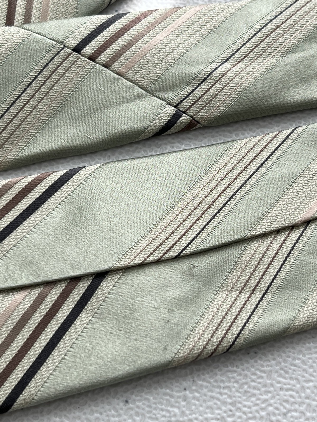 Kenneth Cole Reaction Green, Tan Striped Pattern 100 Silk Tie NWOT