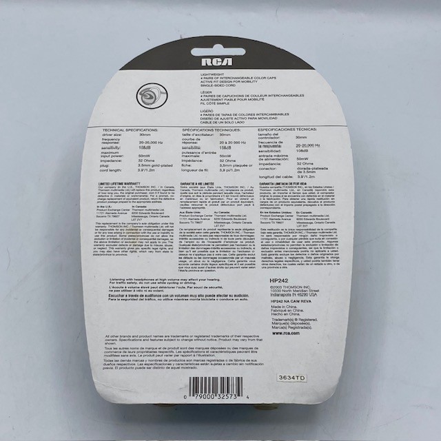 RCA HP242FD Neckband Headphones with Color Caps Single-Sided Cord 2003 SEALED