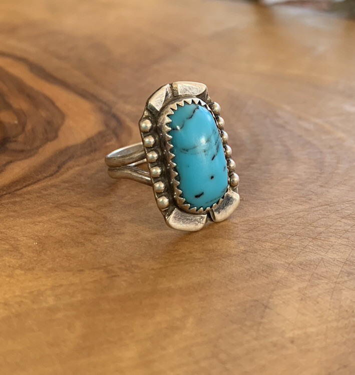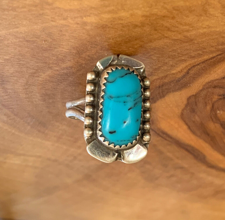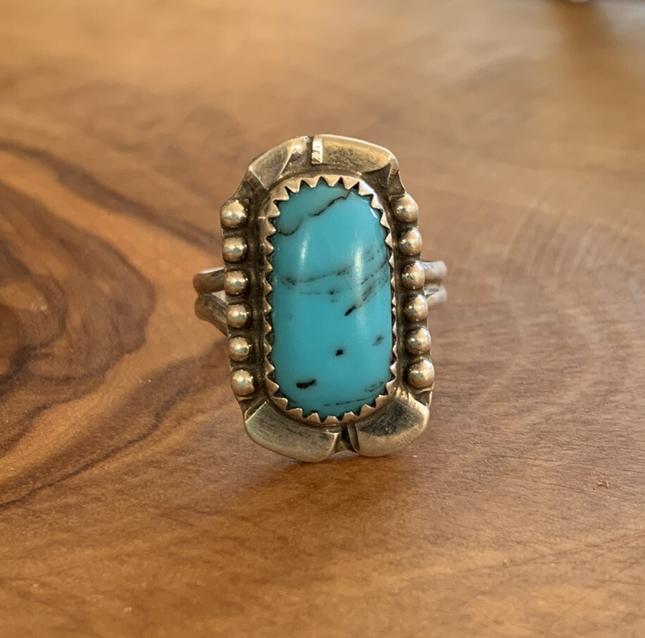 Vtg TURQUOISE Ring Sterling Silver Size 5 Native American Artisan