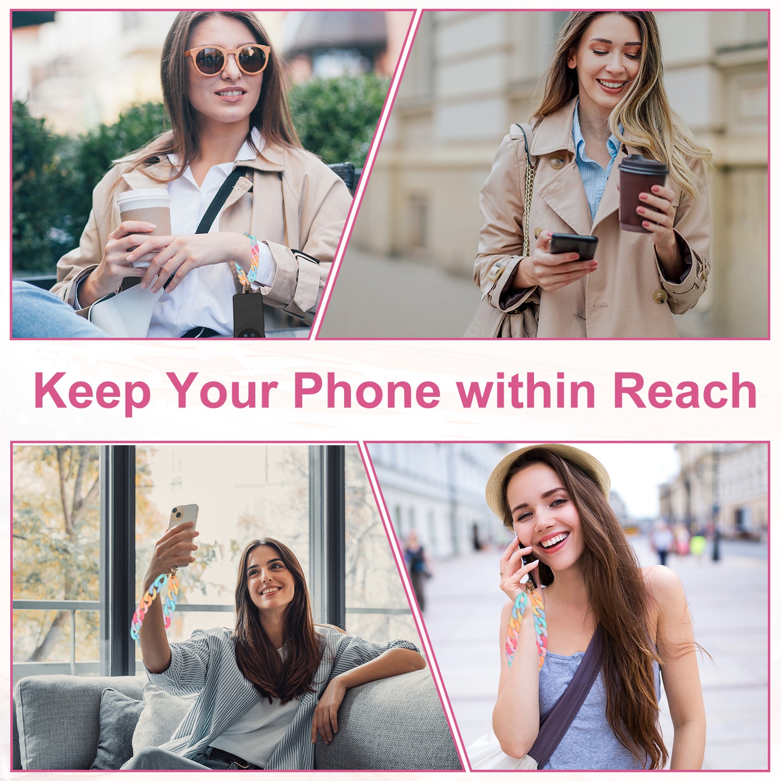 Phone Wrist Strap, 15 Acrylic Cellphone Chain with Tether Tab, Gray
