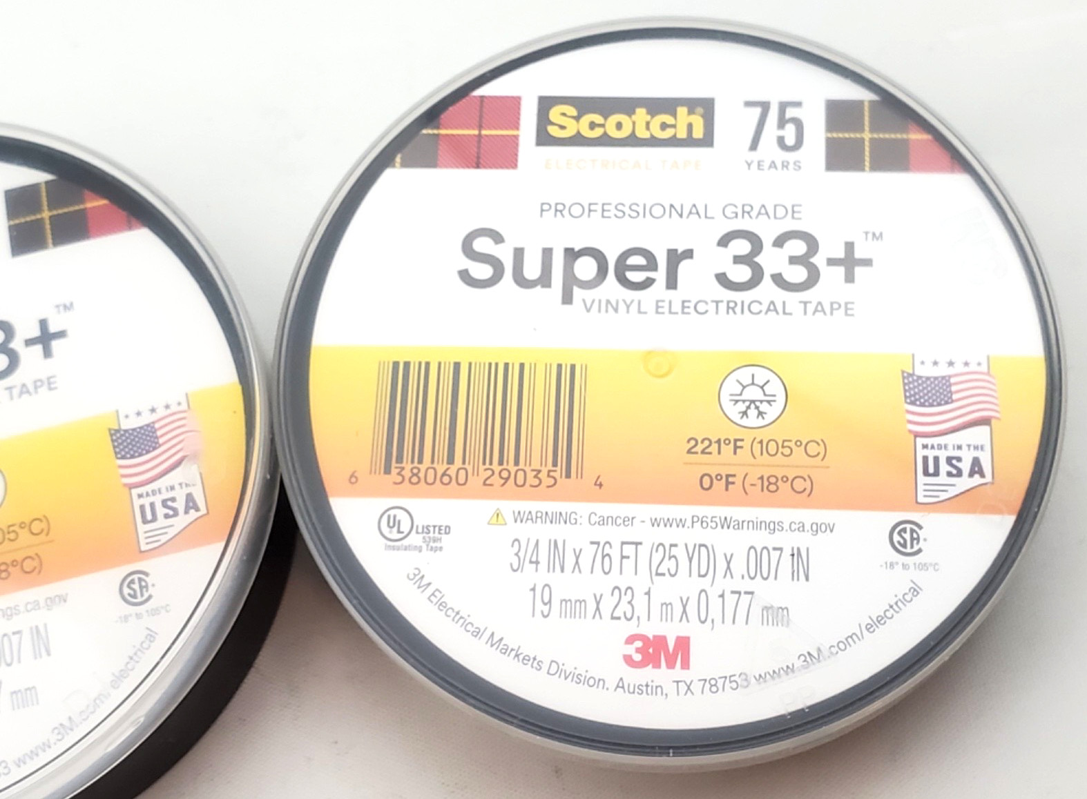 Lot of 2 Rolls 3M Scotch Super 33 Black 3/4 x 76 ft Vinyl Electrical Tape