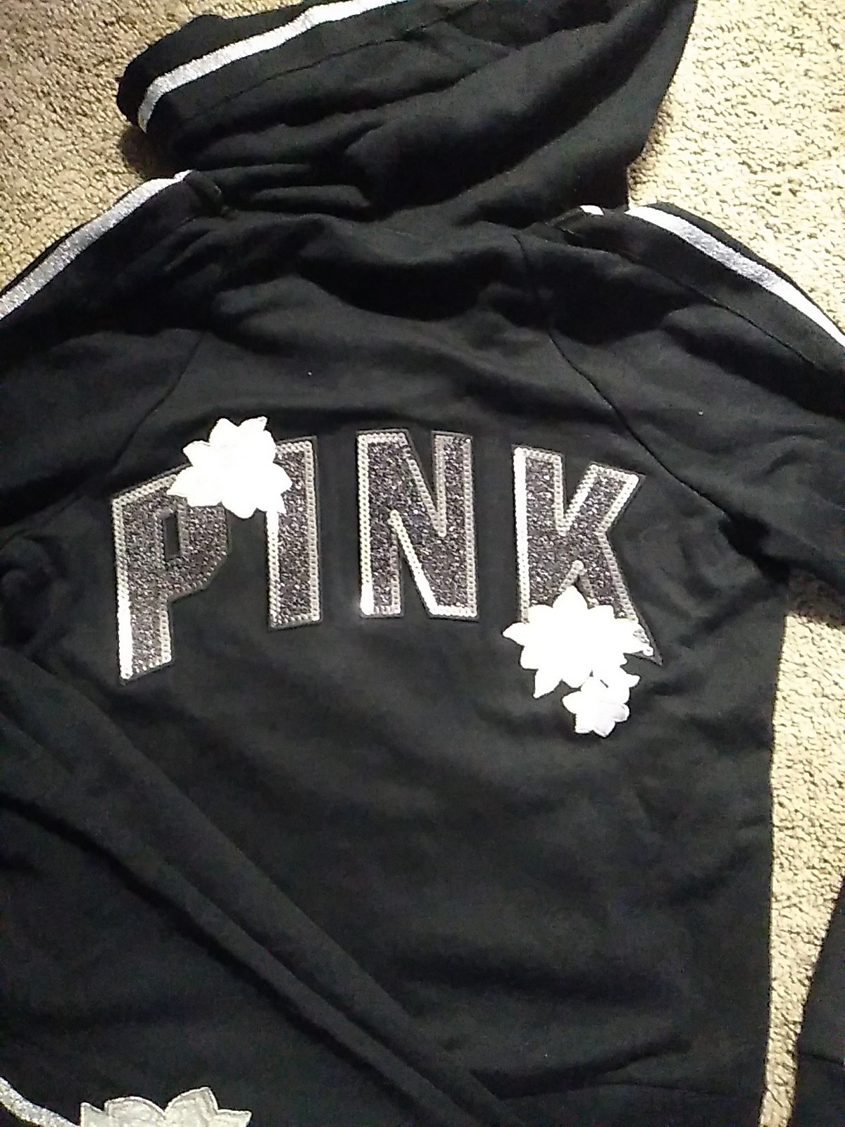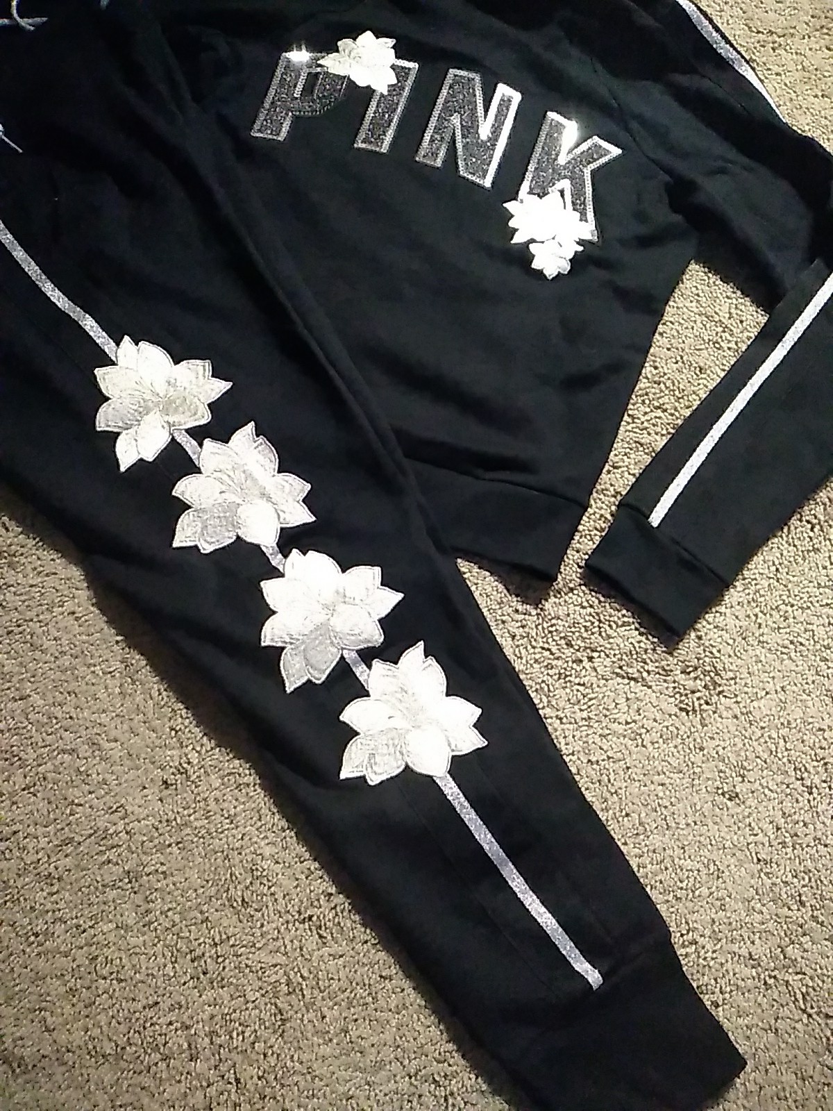 как выглядит Victorias Secret Pink Bling Tropical Floral FZ Hoodie Pants Set Htf New S фото