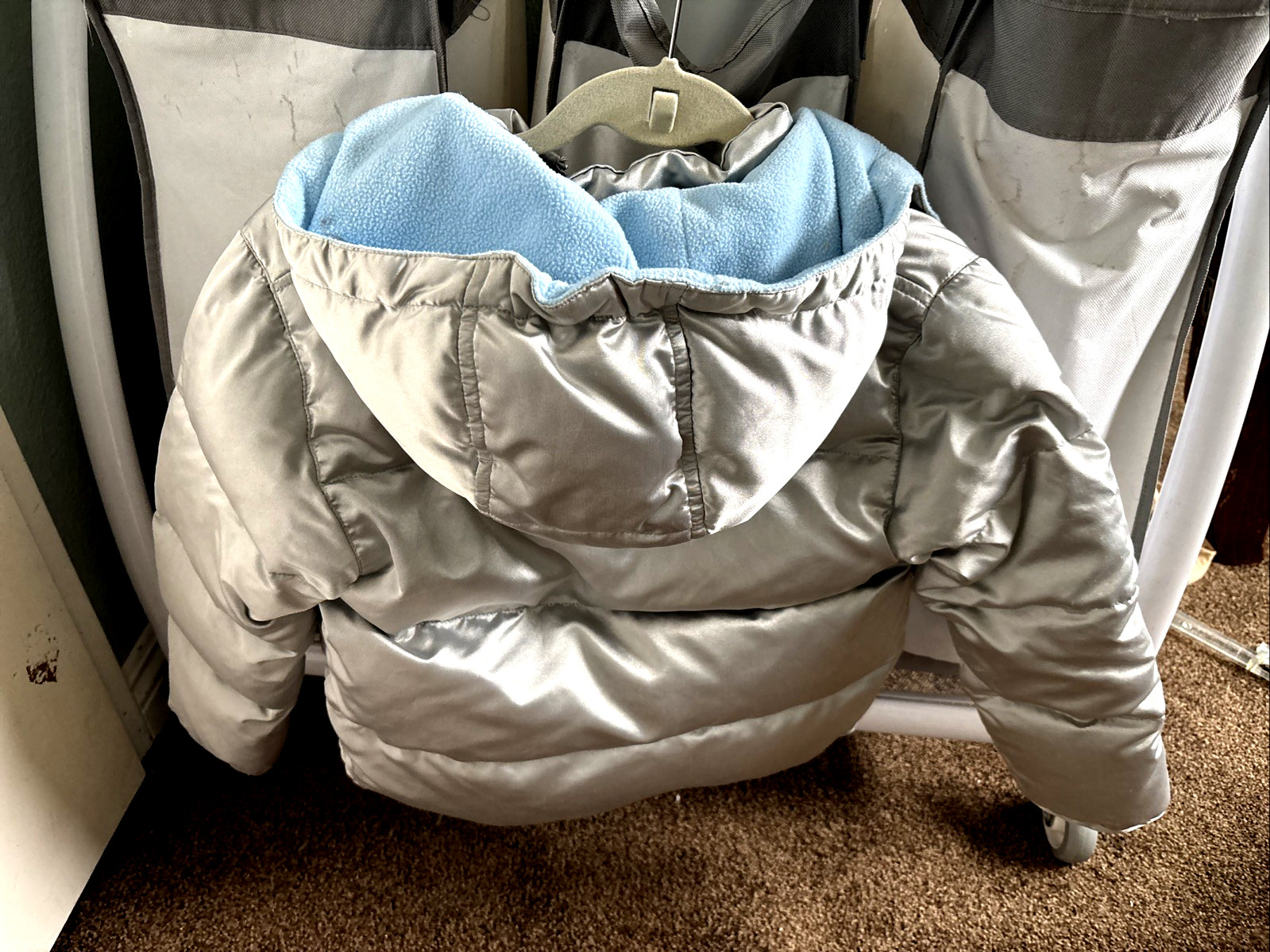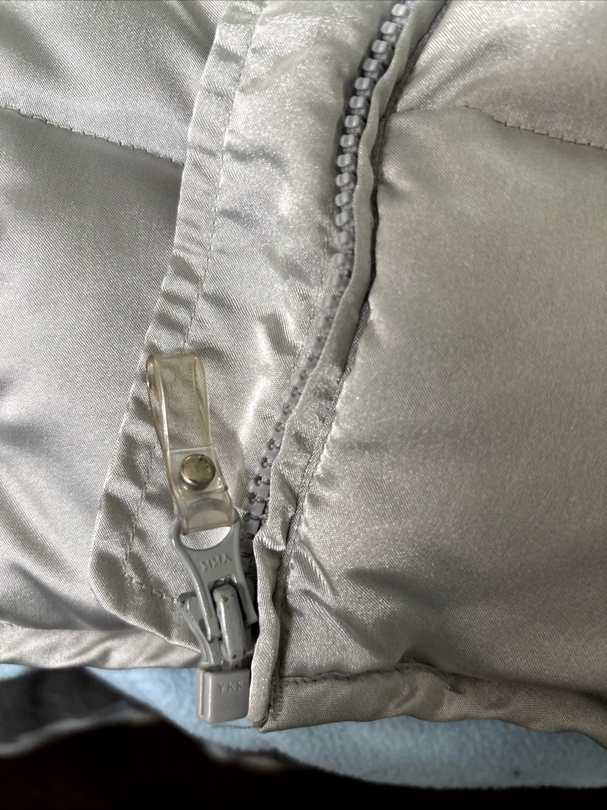 как выглядит Gap, Child s Silver/Gray Puffer Winter Jacket With Removeable Hood, Size S 5-6 фото