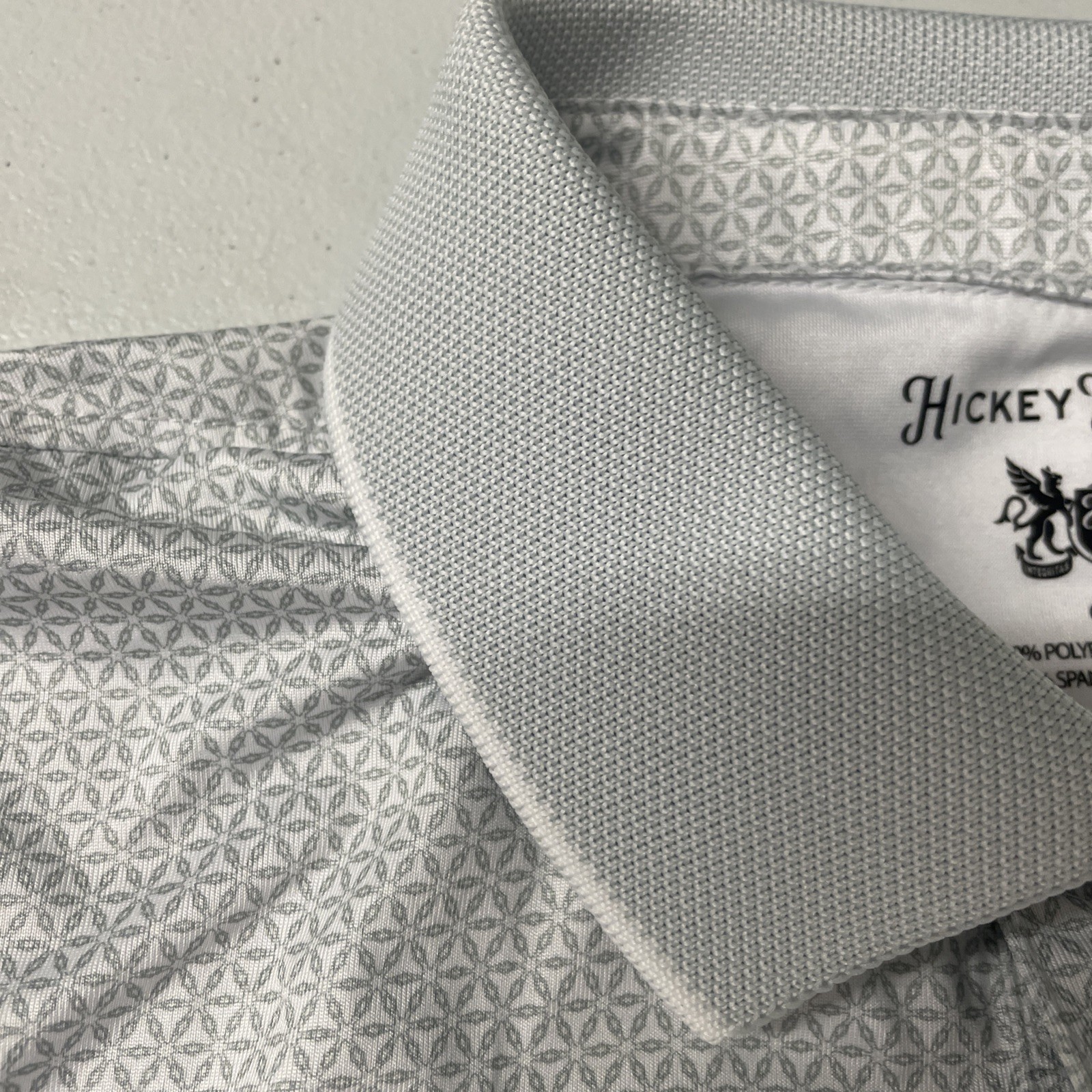 как выглядит HICKEY FREEMAN Mens Short Sleeve Polo Shirt Stretch GRAY PATTERN Wicking LARGE фото