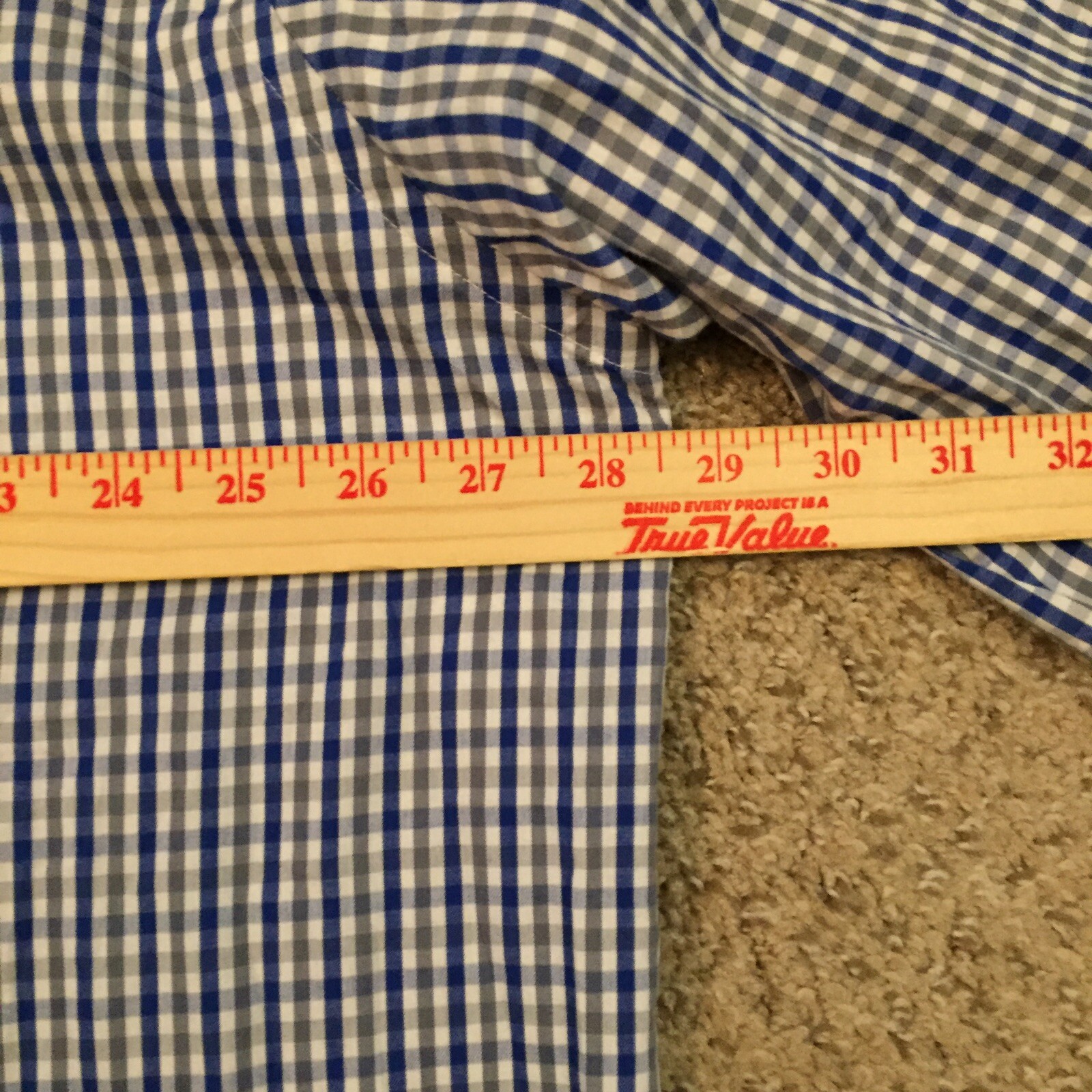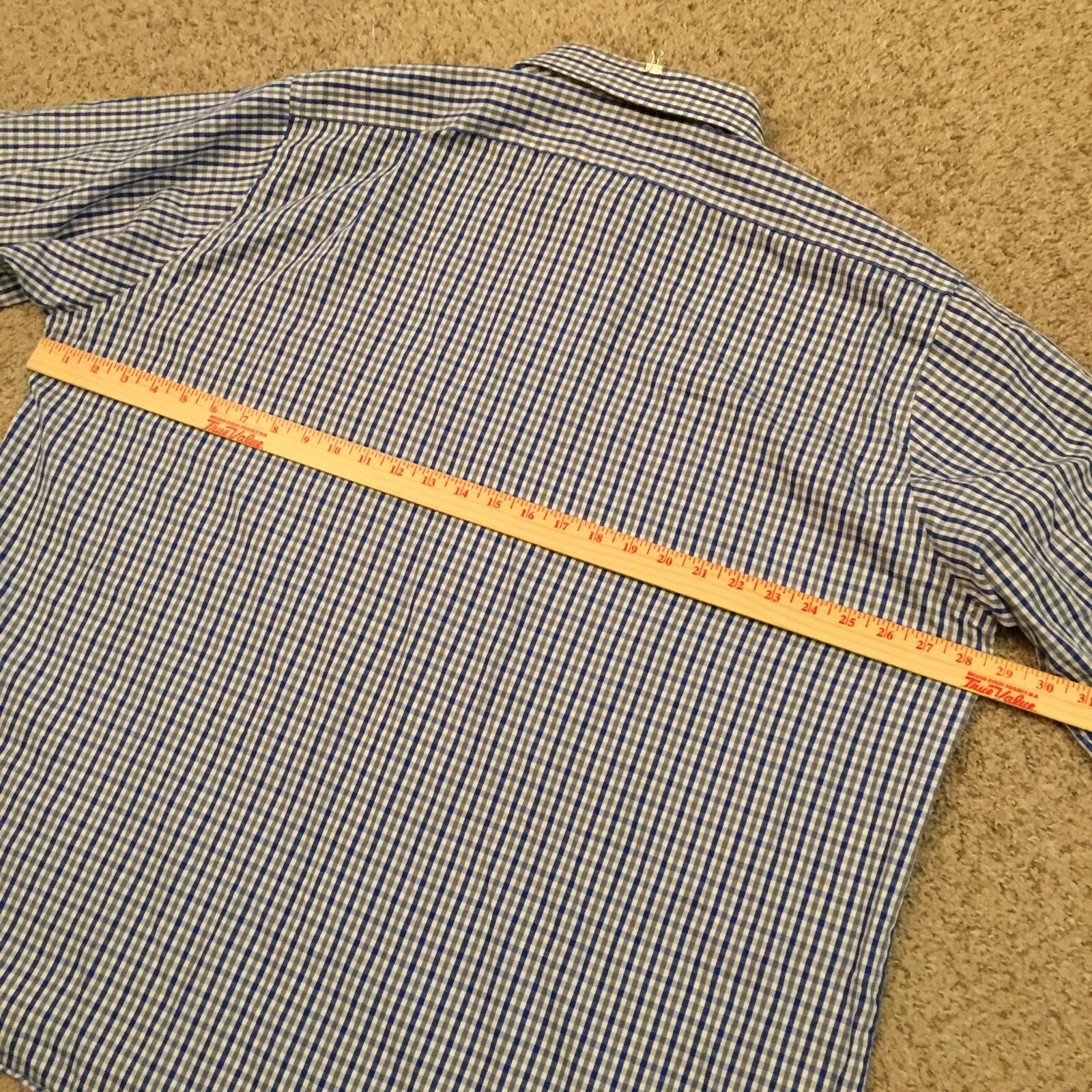 как выглядит Van Heusen Shirt Mens 18.5 Blue Gray Plaid Long Sleeve Button Up Flex Collar фото