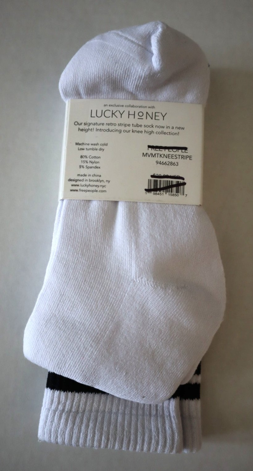 Free People Movement 94662863 Women's O/S White Knee High Logo Stripe Tube Socks