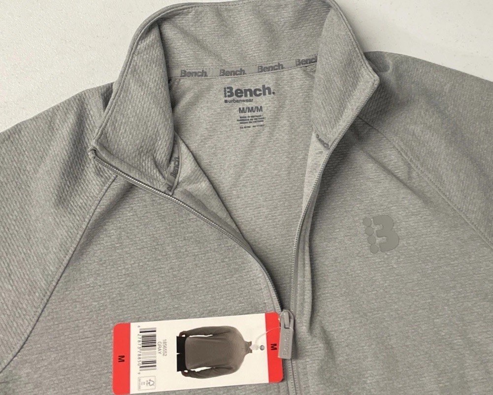 как выглядит BENCH Mens Urbanwear Moisture Wicking Full Zip Knit Jacket GRAY MEDIUM Quick Dr фото