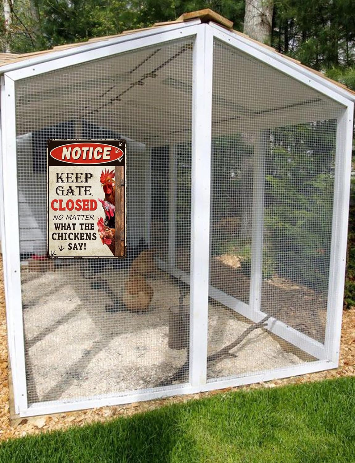 Humorous Chicken Coop Sign - Keep Gate Closed Decorative Metal Sign for Far...