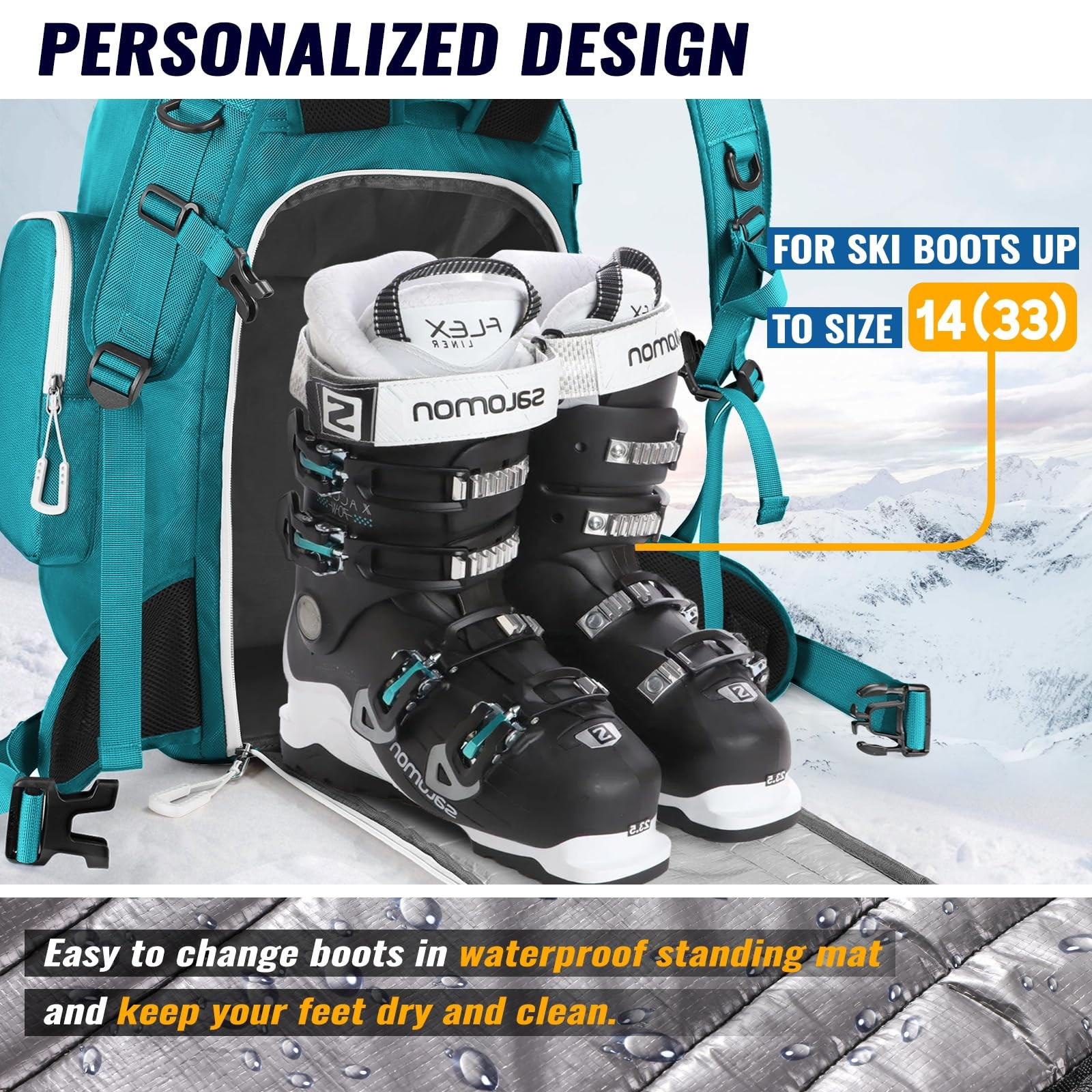 Ski Boot Bag, 65L Durable Travel Backpack, 1680D Nylon Waterproof Snowboard Boot