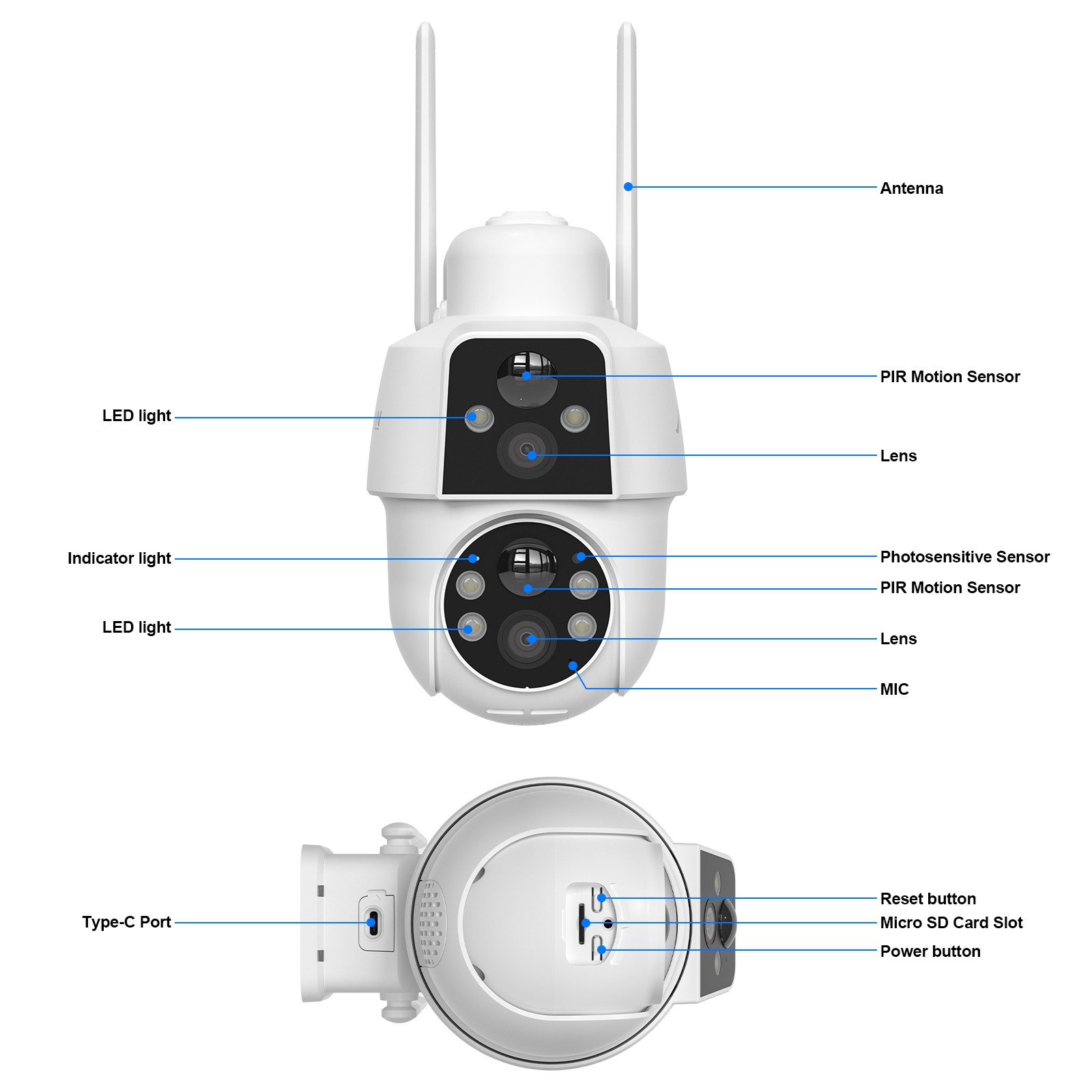 Camera Function 1: 2 Way Audio; Motion Detection; Humanoid Detection; Alarm Prompt