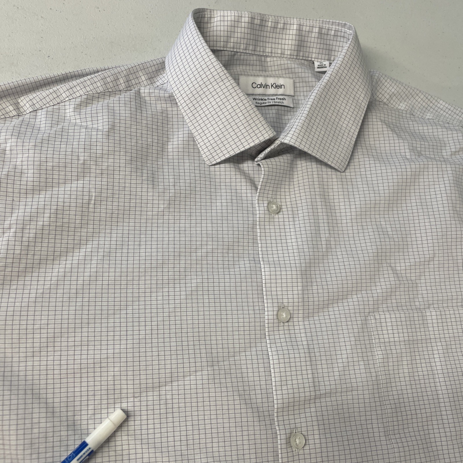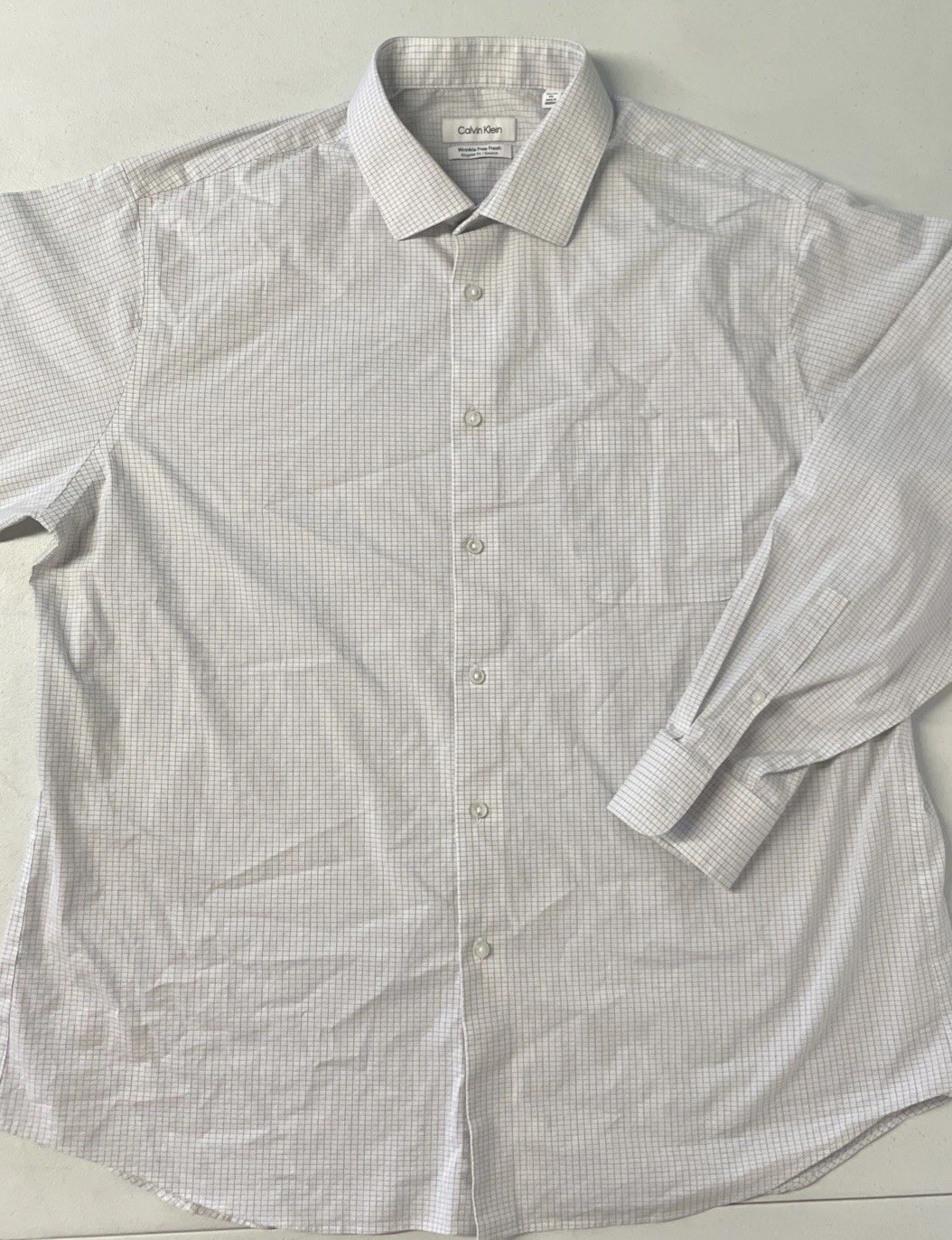 CALVIN KLEIN Men Wrinkle Free Stretch Dress Shirt Regular XL 17-17.5 34/35 WHITE