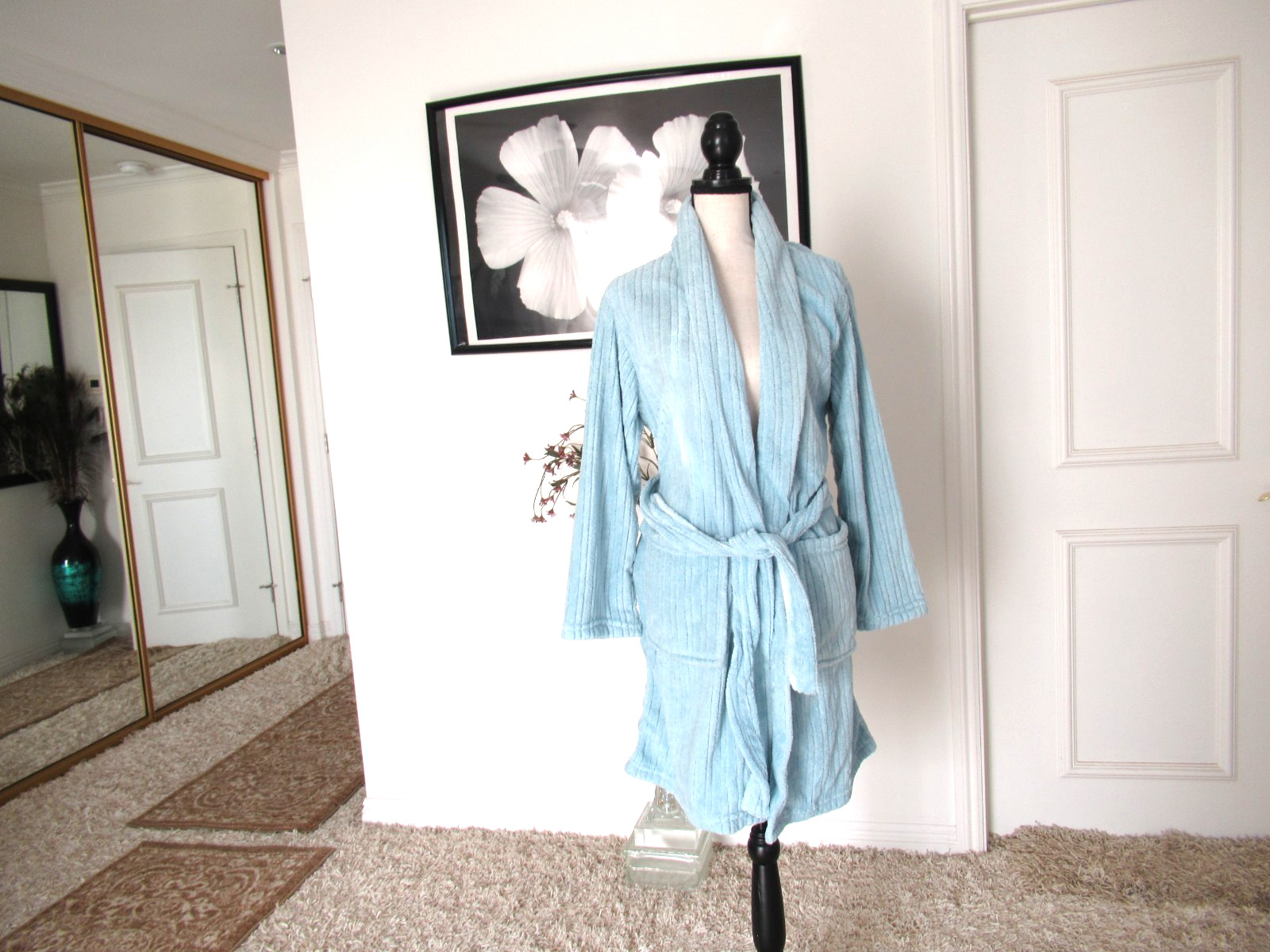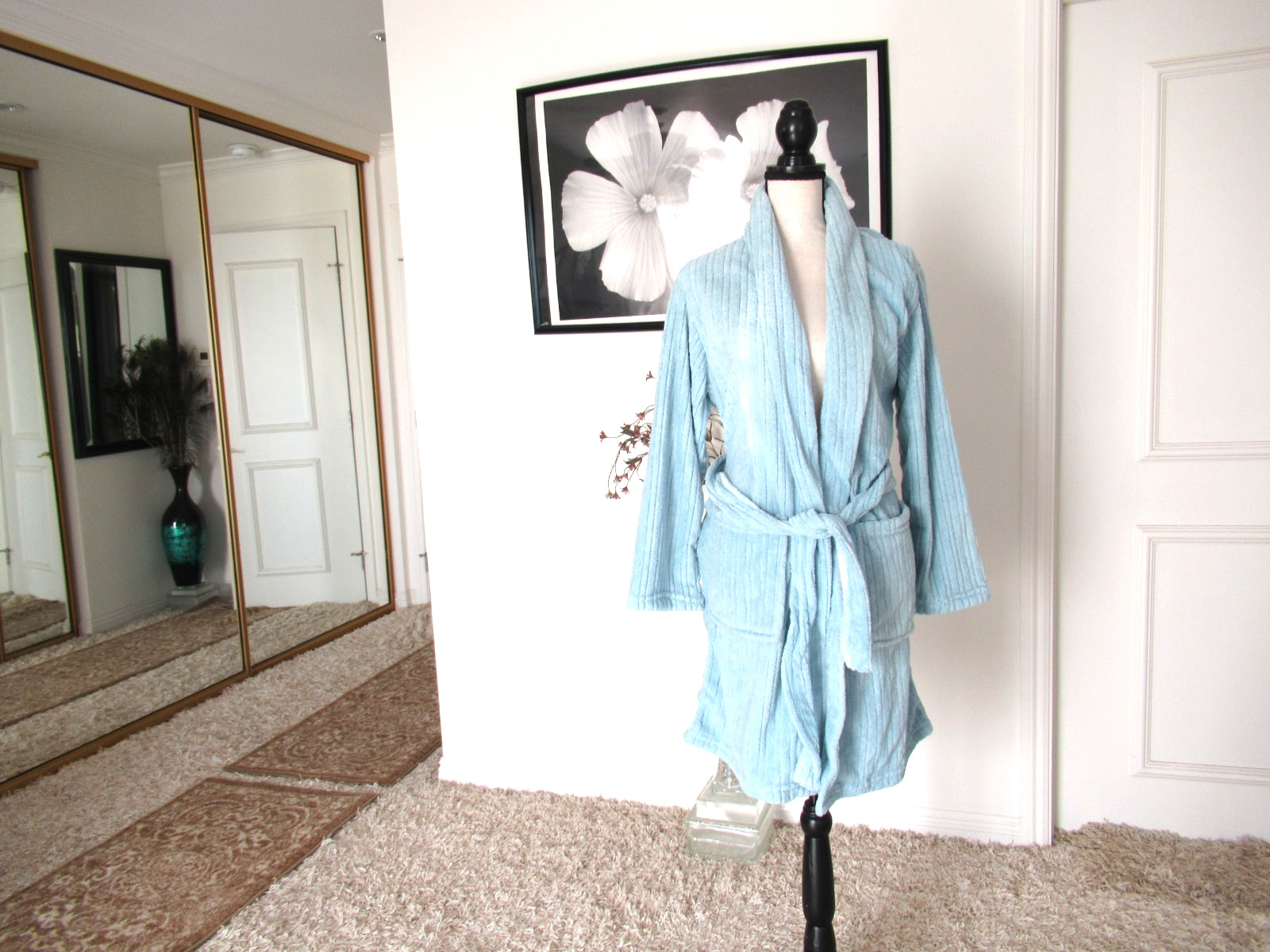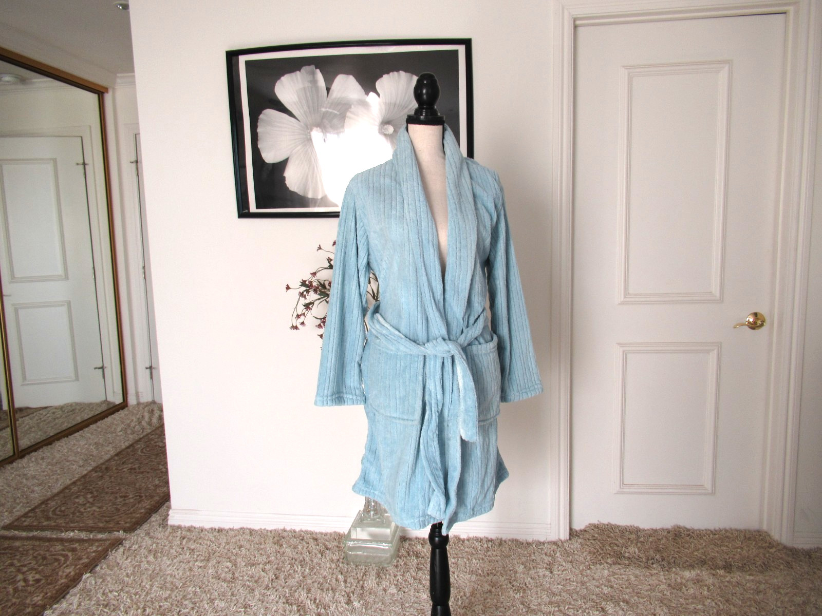 SUPER SOFT Blue Fleece Robe Cozy Plush Bath Robe OS 36
