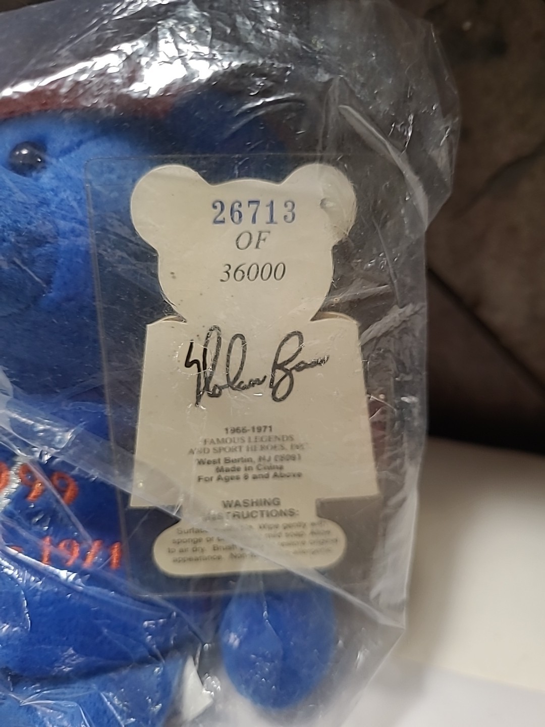 как выглядит NOLAN RYAN 26713/36K BLUE AUTO EXPRESS COOPERSTOWN COLLECTIBLE BEAR PLUSH-NEW фото