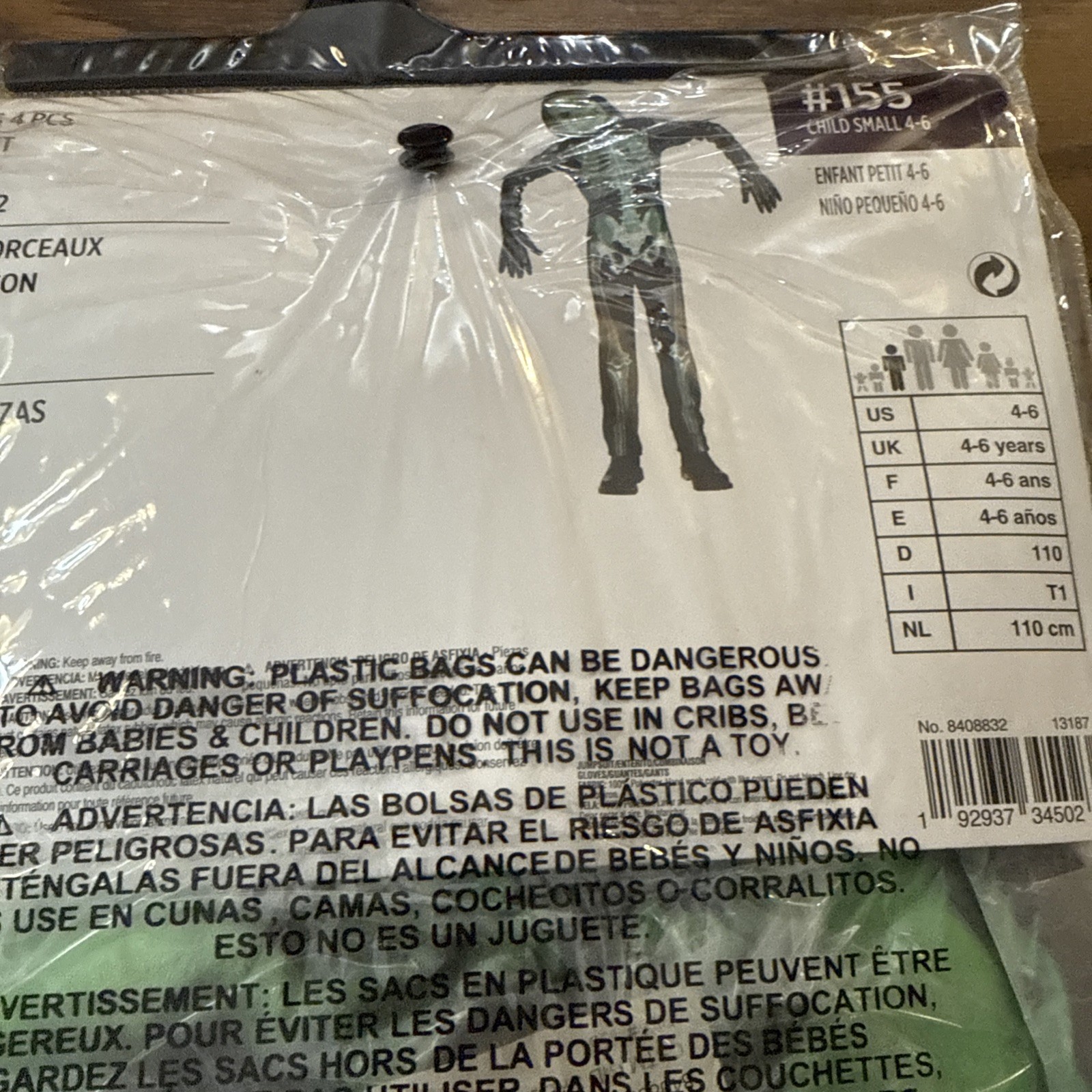 Skeleton Costume SMALL 4/6 Kids Glow in Dark Skeleton Halloween Costume SM 4/6