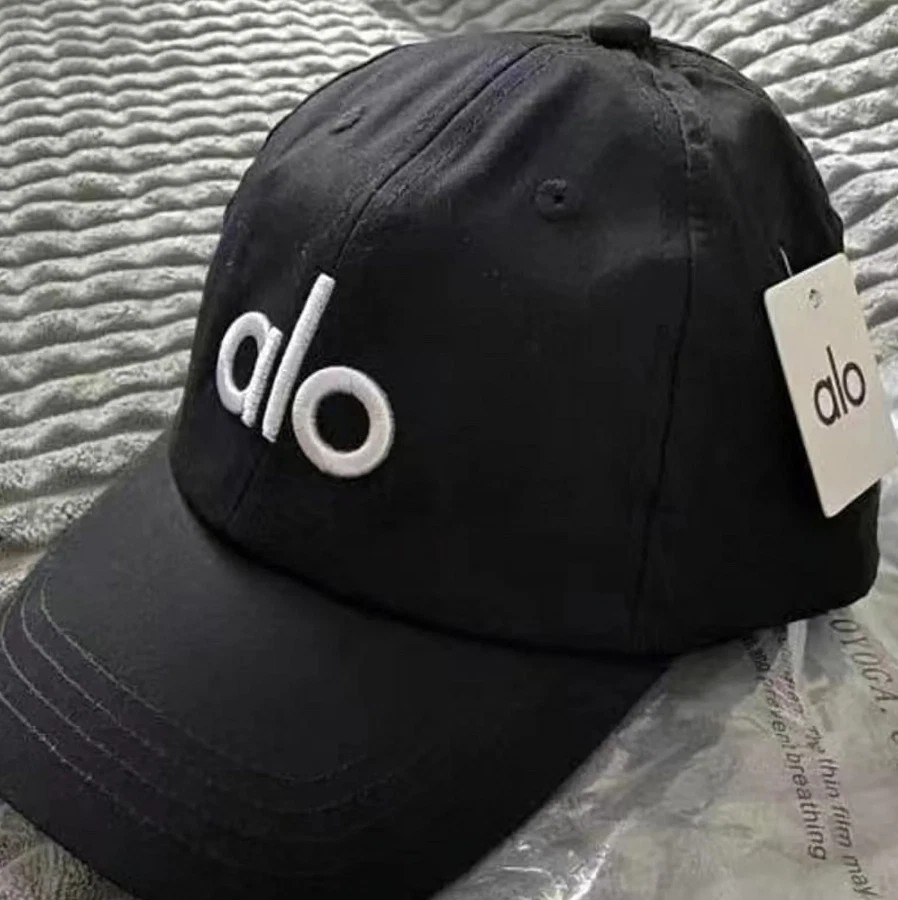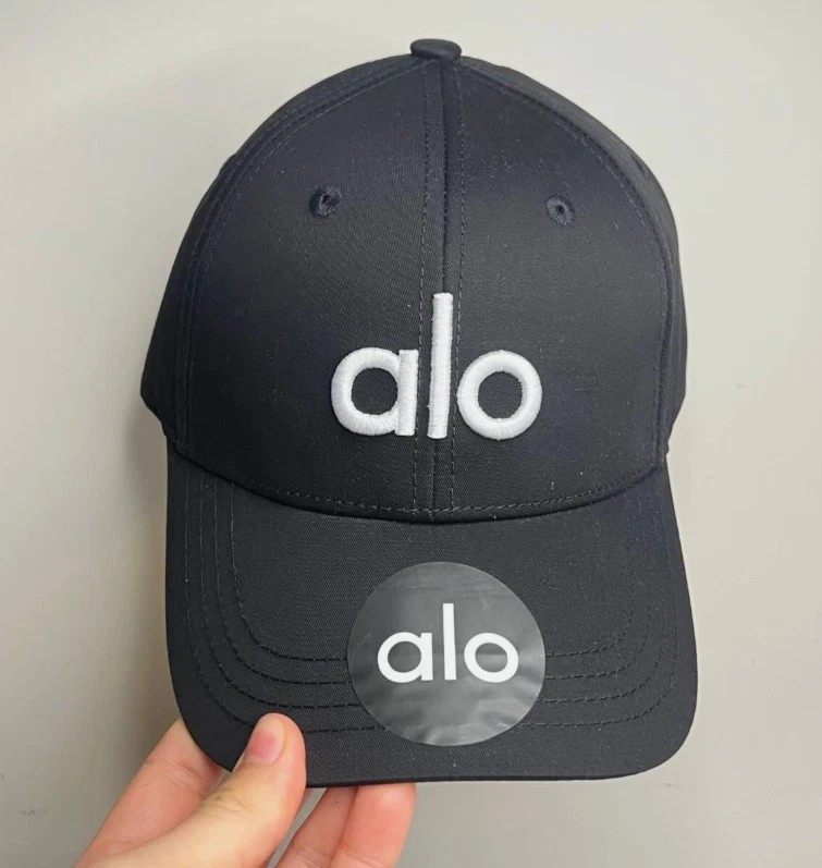 ALO Yoga Adjustable Black Cap Embroidered White Logo Hat NWT