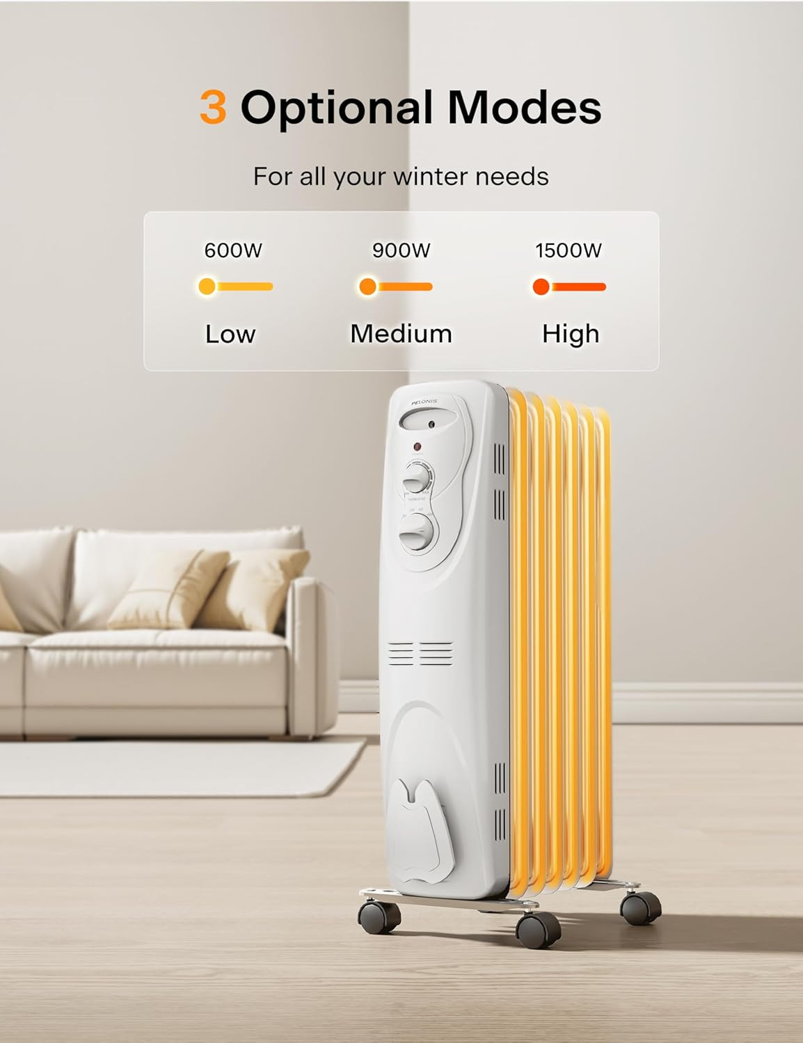 Radiator Heater for Large Space, Electric Oil Filled Radiator, Dual Knobs, 1500W