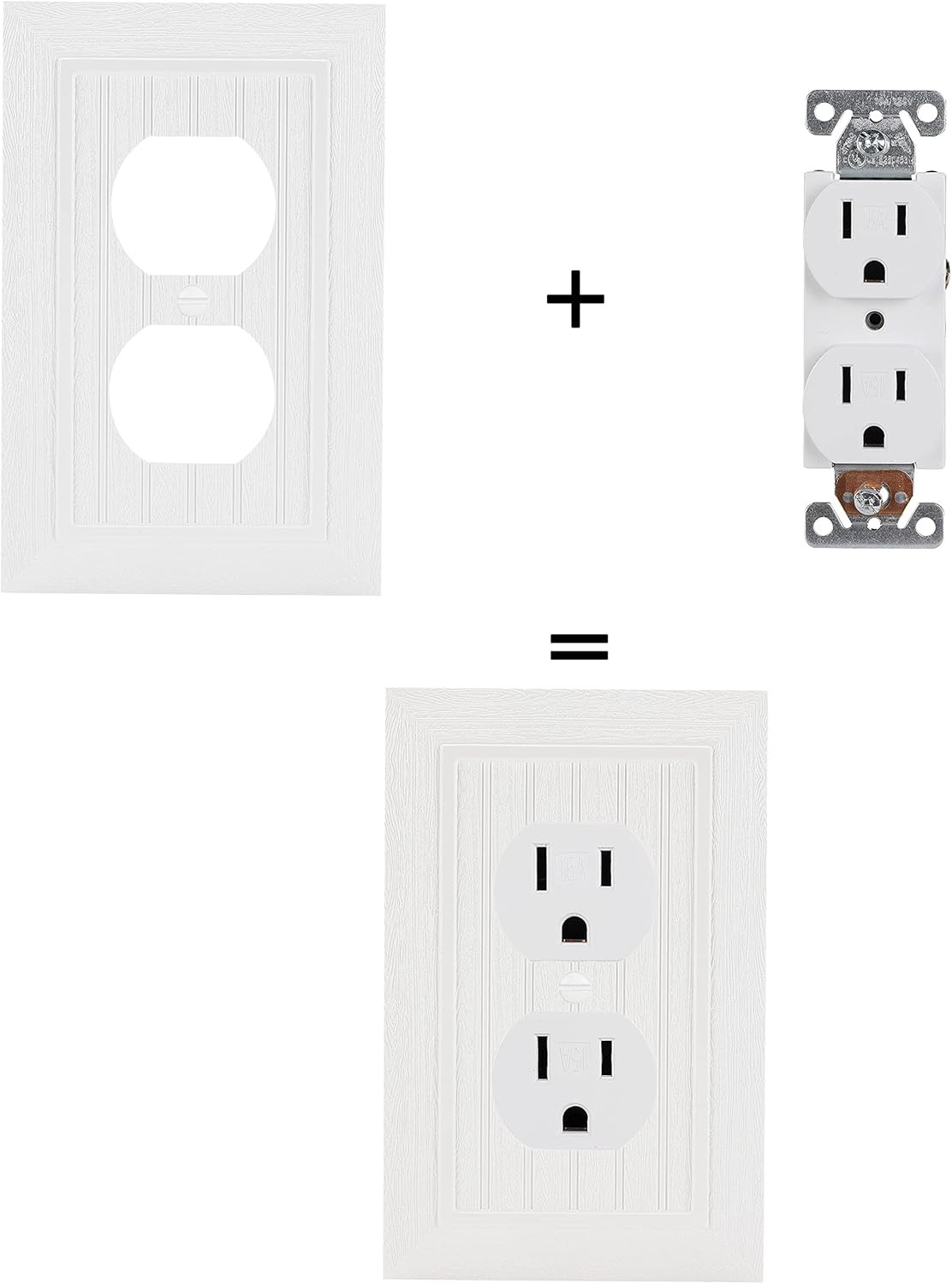 Bates- Classic Beadboard Single Duplex Wall Plate, 4 Pack, White Outlet Covers,
