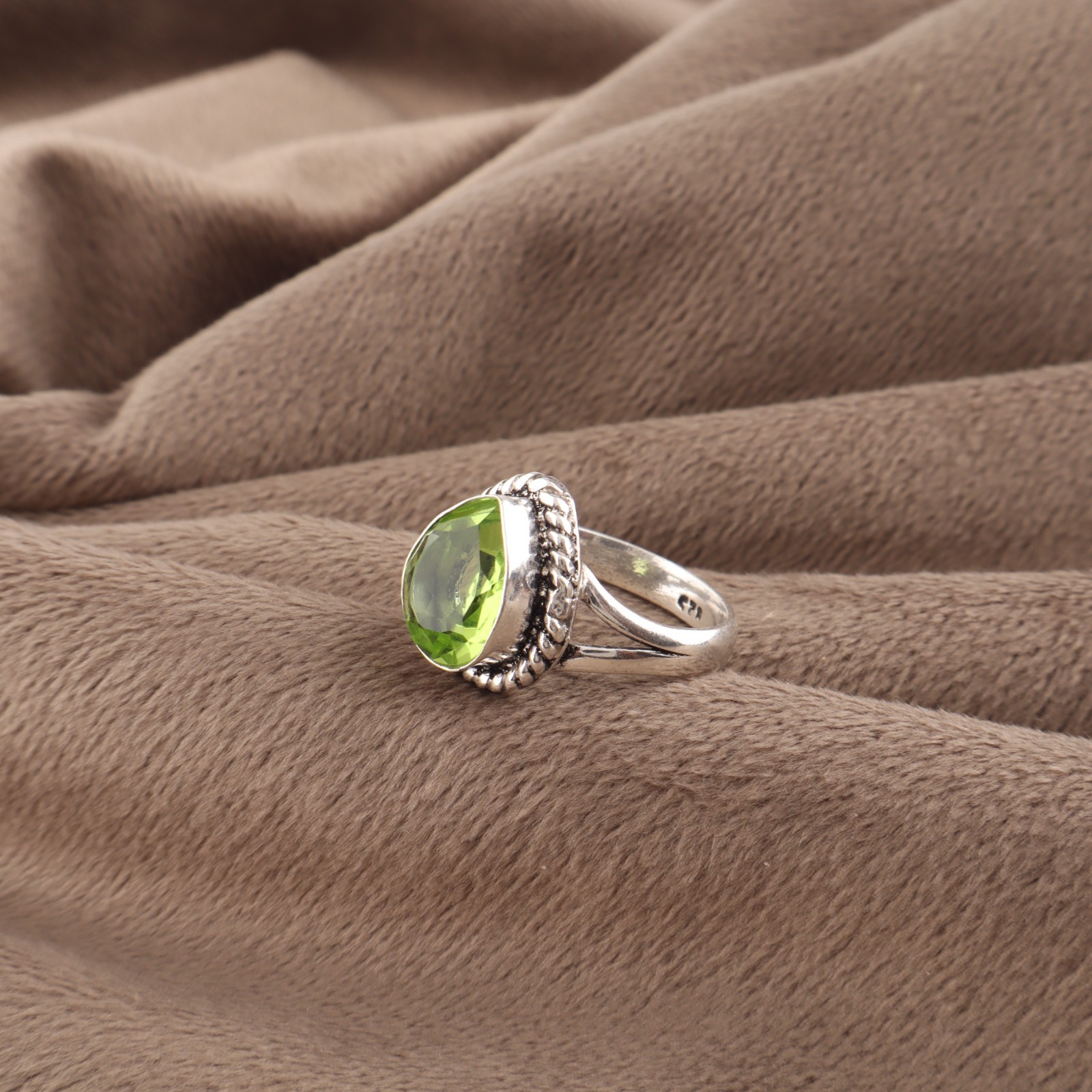 как выглядит Peridot Gemstone 925 Sterling Silver Jewelry Handmade Pear Ring For Wedding Gift фото