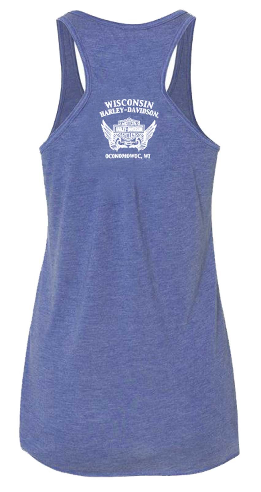 Harley-Davidson Women's Blue Chrome Sleeveless Fullback Tank Top, Neptune Blue