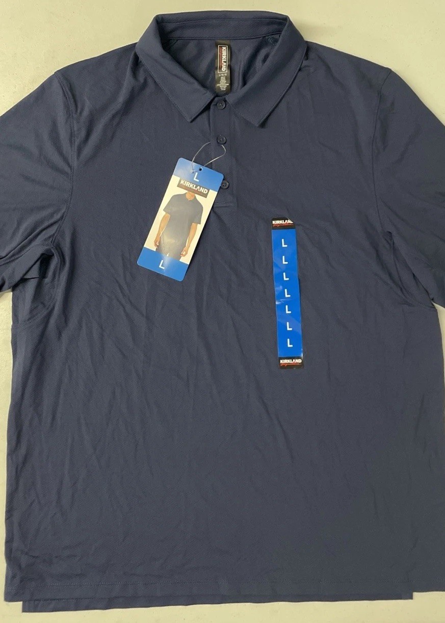 как выглядит KIRKLAND Signature Mens Performance Polo Shirt BLUE Wicking LARGE Stretch UPF50 фото