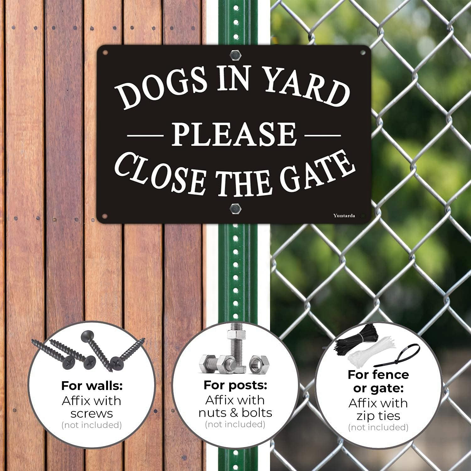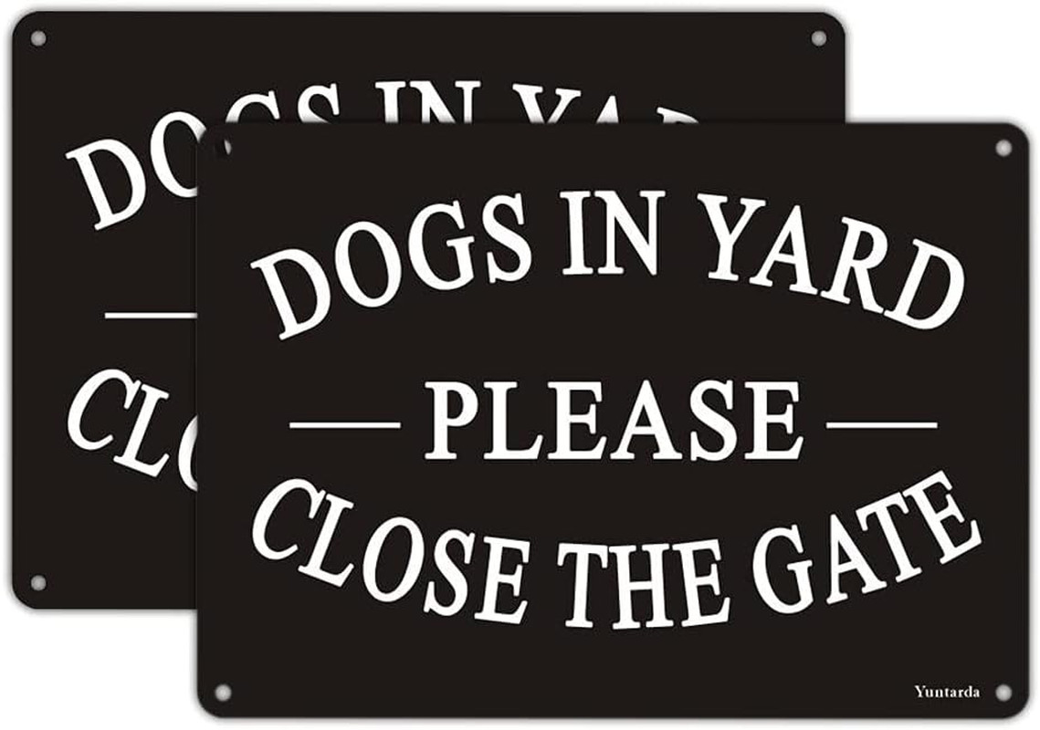 Dogs in Yard Please Close the Gate Sign, 2 Pack 10x7inches Reflective Metal...