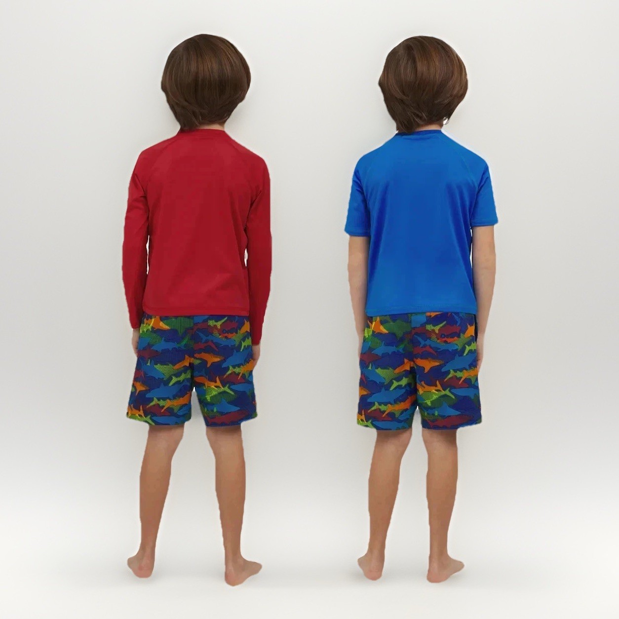 как выглядит Lands End 3 Piece Swim Set Rash-Guard Trunks Boys Size 5 Red Shark Print фото