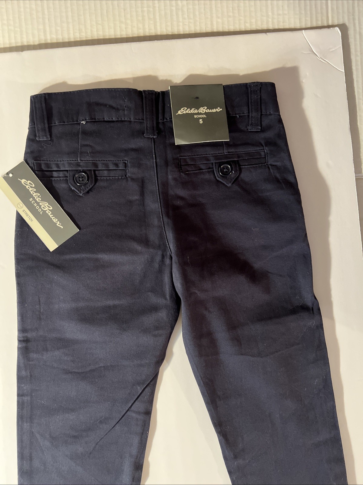 как выглядит EDDIE BAUER BOYS SCHOOL PANTS NAVY BLUE SKINNY LEG SZ 5 Loop Belt side Pockets фото