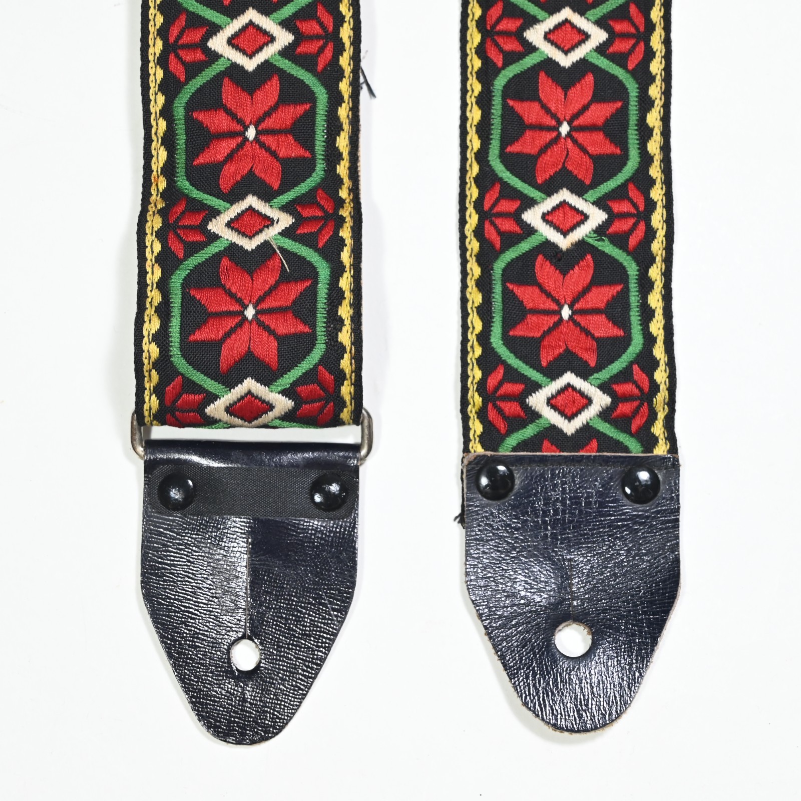 RARE: Deluxe Embroidered Guitar Strap, Metal Buckle, Leather Ends, Japan 1970s