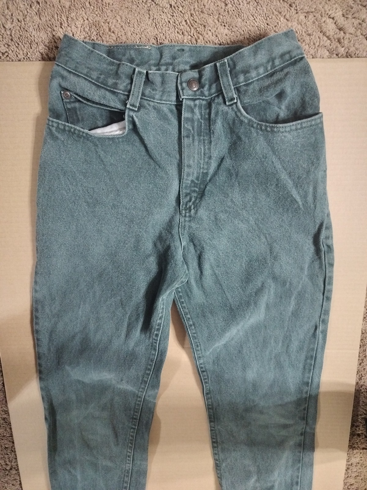 как выглядит Vtg Lee Jeans 16 Reg Green USA Made Stain 28.5 Inseam 39 Long Stain фото
