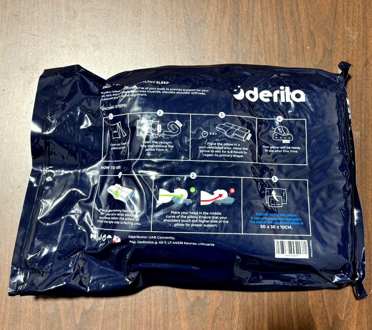 как выглядит DERILA Ergonomic Memory Foam Pillow Perfect Sleep New Factory Sealed 50x30x10cm фото