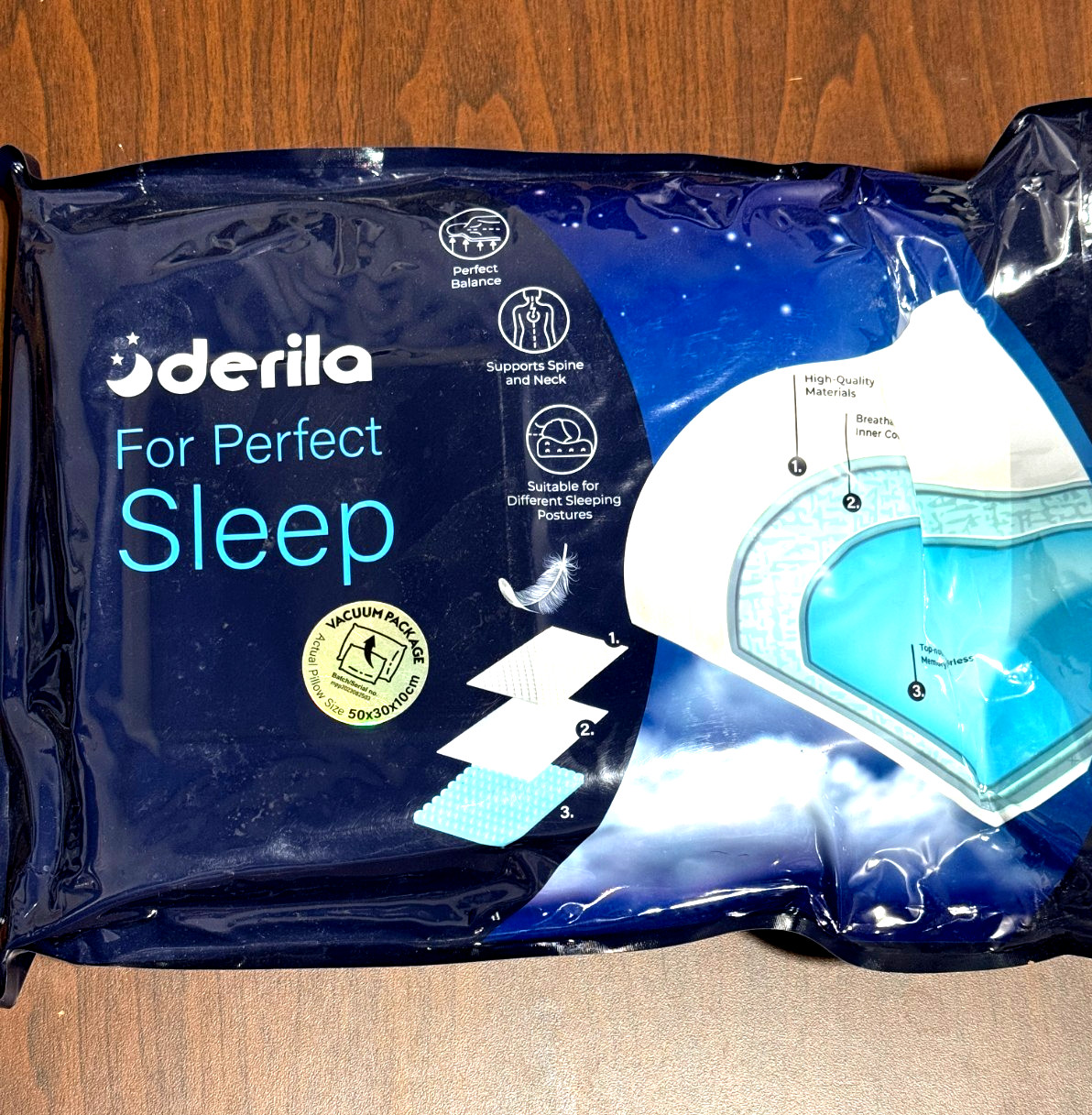DERILA Ergonomic Memory Foam Pillow Perfect Sleep New Factory Sealed 50x30x10cm