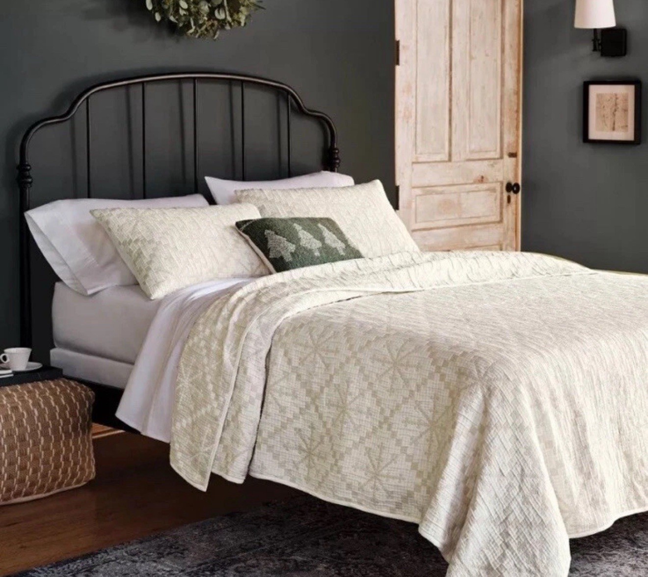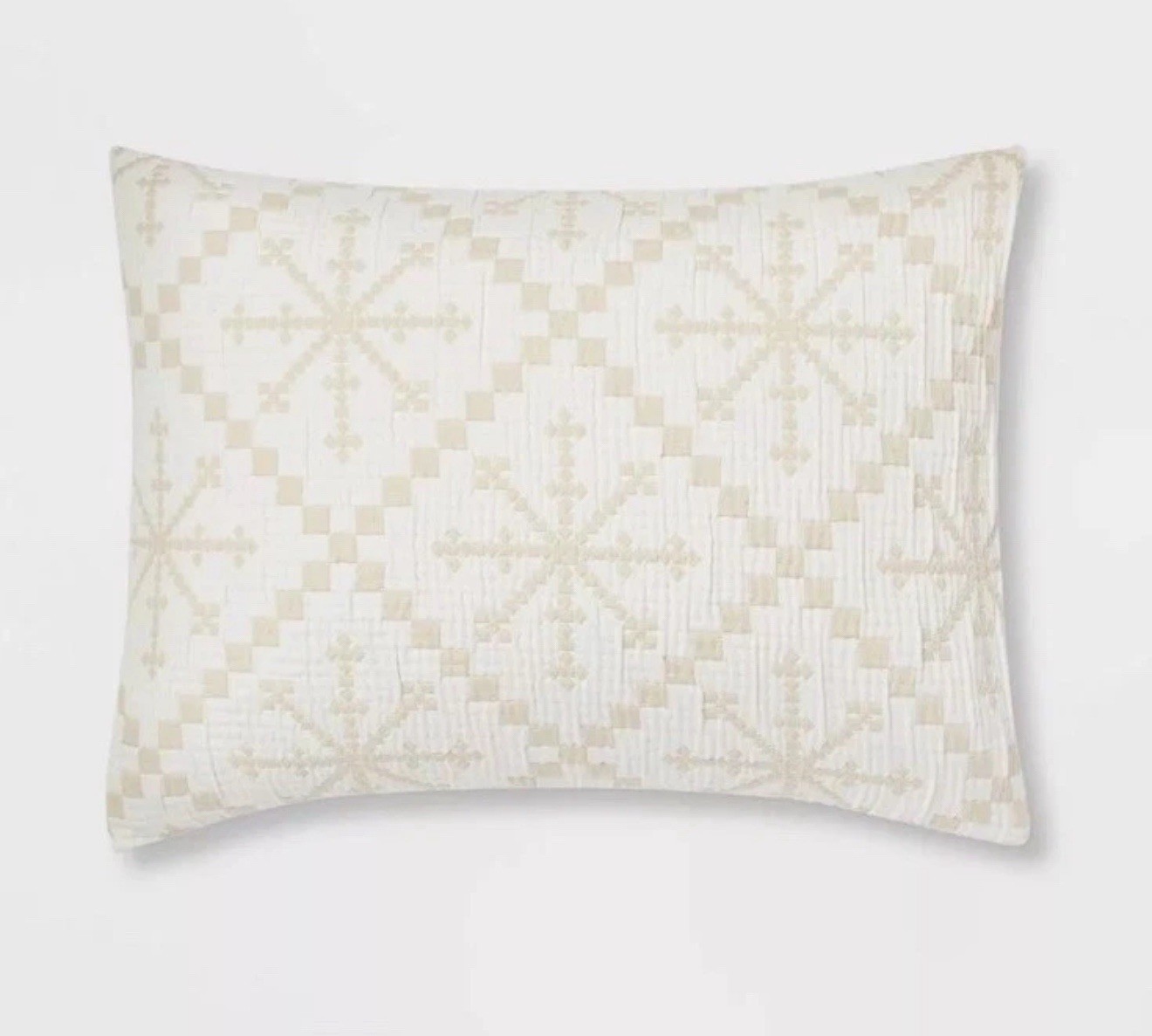 как выглядит 3pc Full/Queen Matelasse Holiday Quilt and Sham Set Cream Snowflake Threshold фото