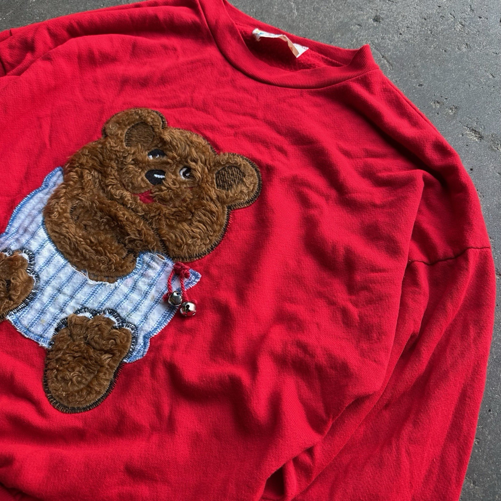 Vintage Beanzie Teddy Bear Sweatshirt Red Fuzzy Applique USA Made Size Large