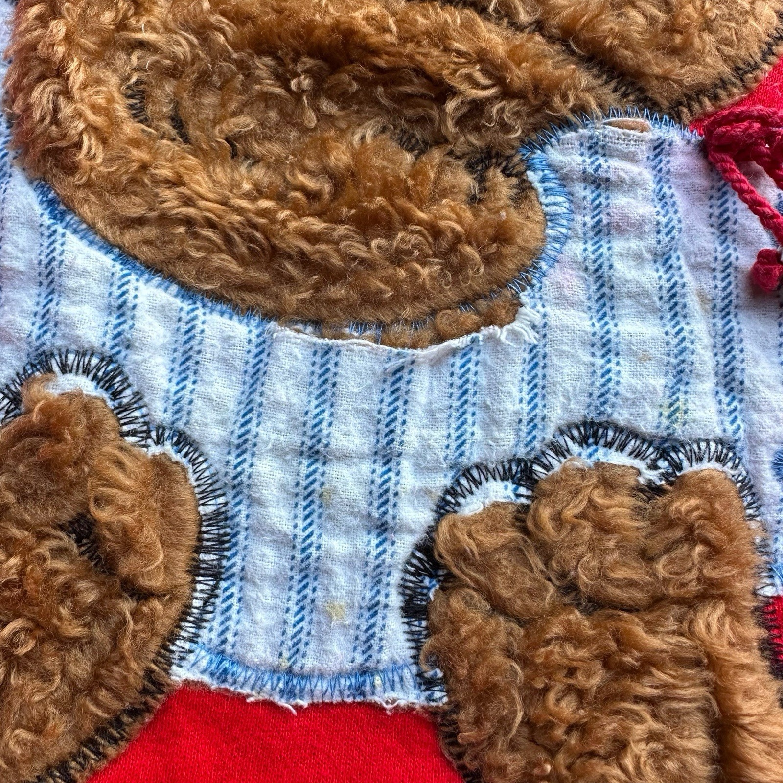 как выглядит Vintage Beanzie Teddy Bear Sweatshirt Red Fuzzy Applique USA Made Size Large фото