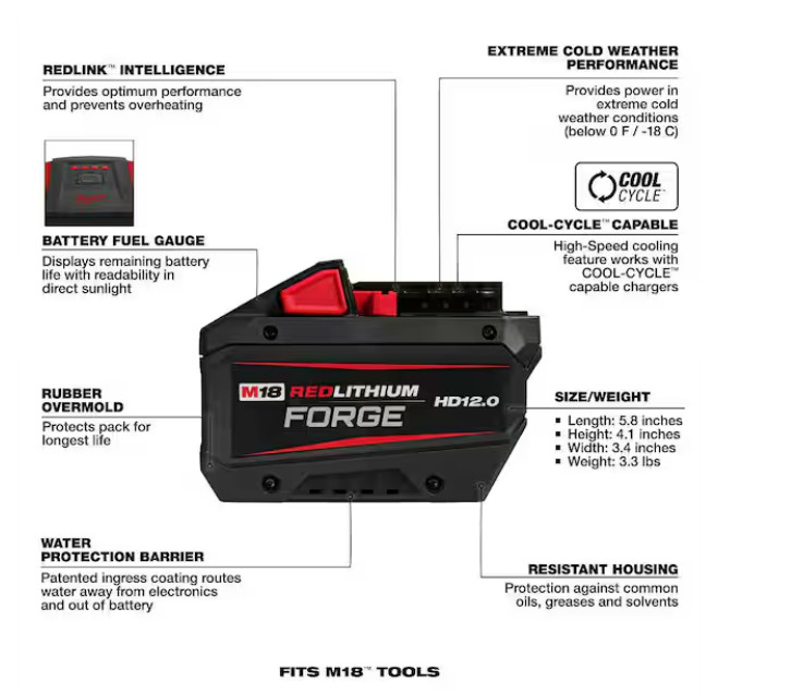 Milwaukee 48-11-1813 M18 18V REDLITHIUM FORGE HD12.0 Battery Pack NEW