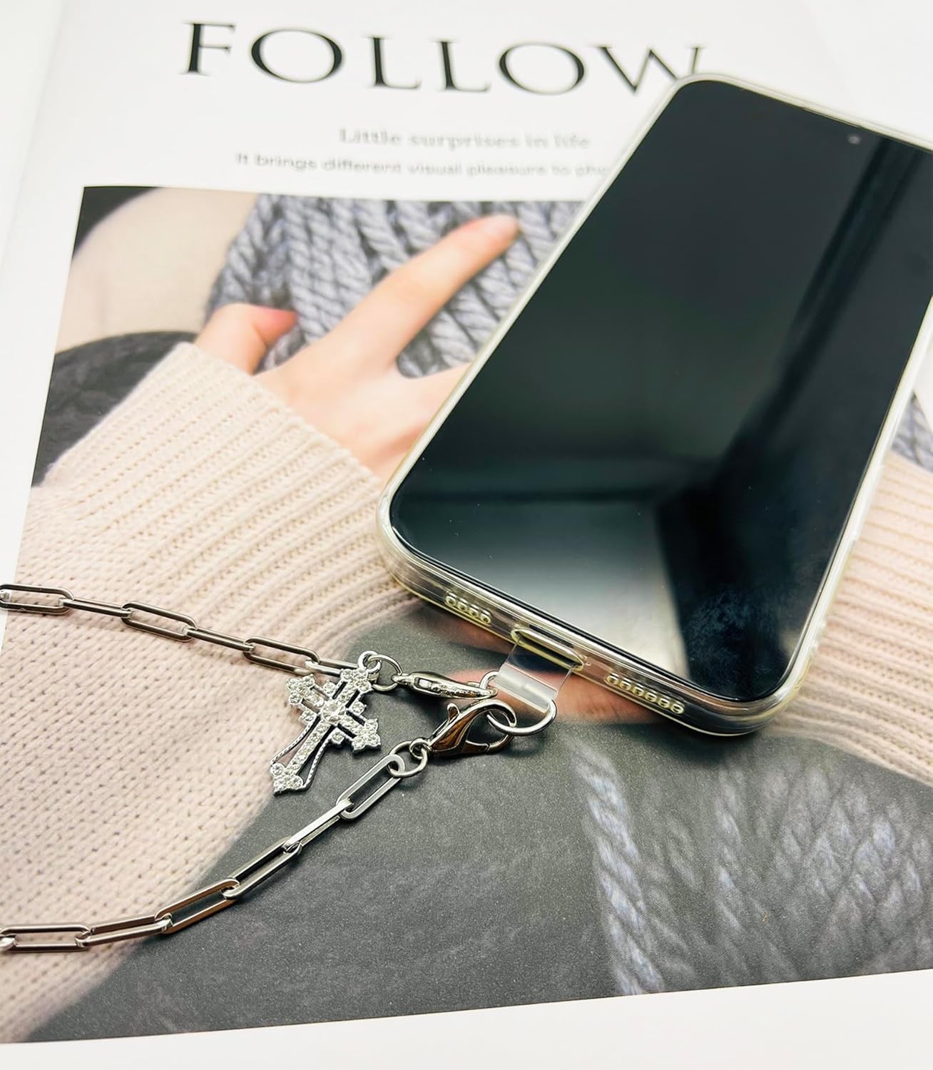 Phone Wrist Strap Metal Chain Wristlet 01 silver Christ Cross