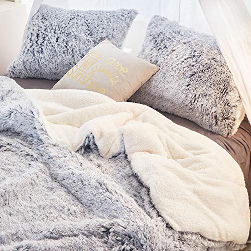 3-Piece Plush Shaggy Comforter Set Queen, Luxury Queen 88x88 Gray N White