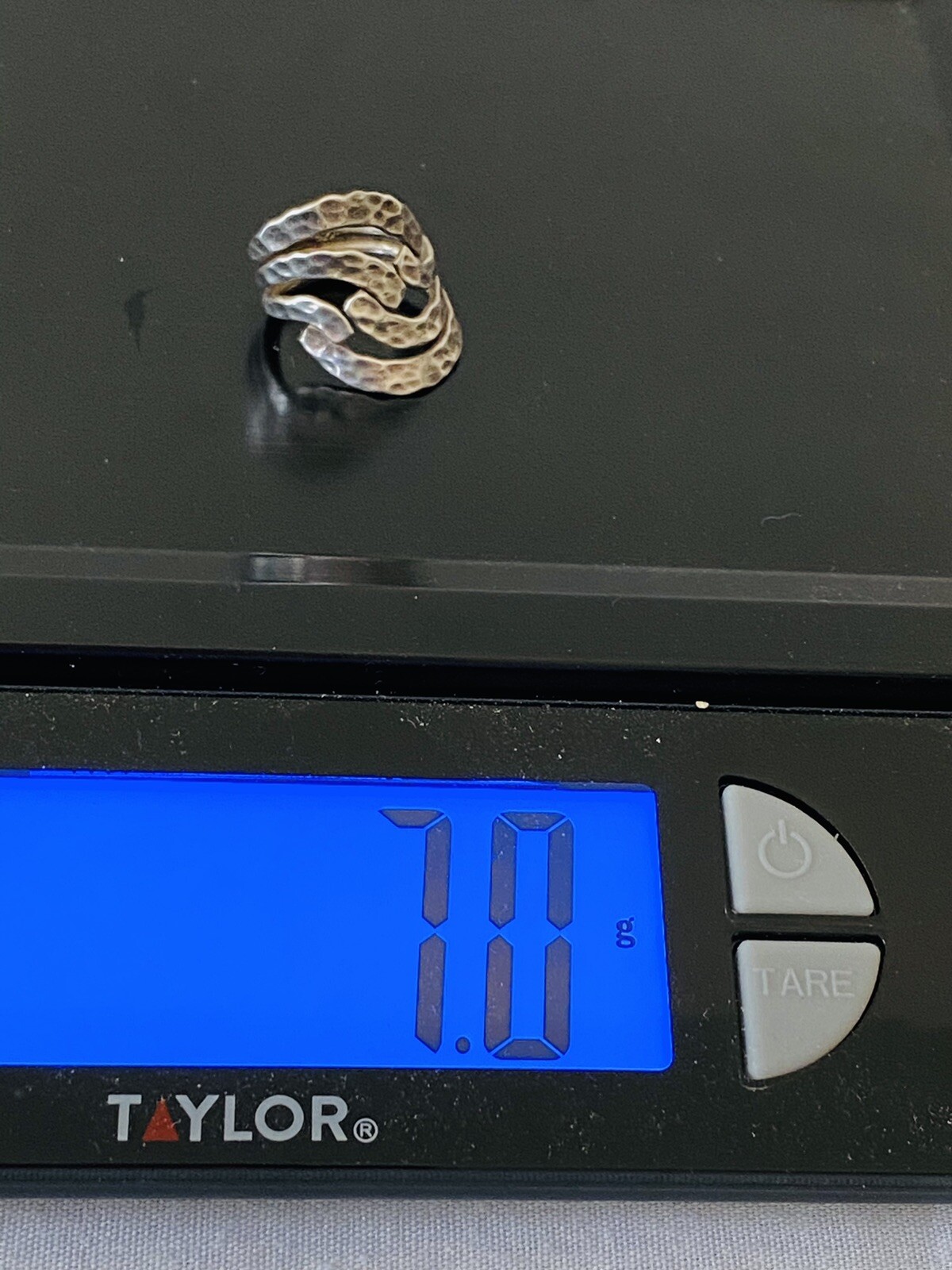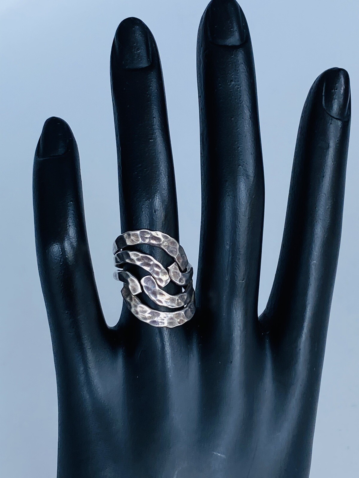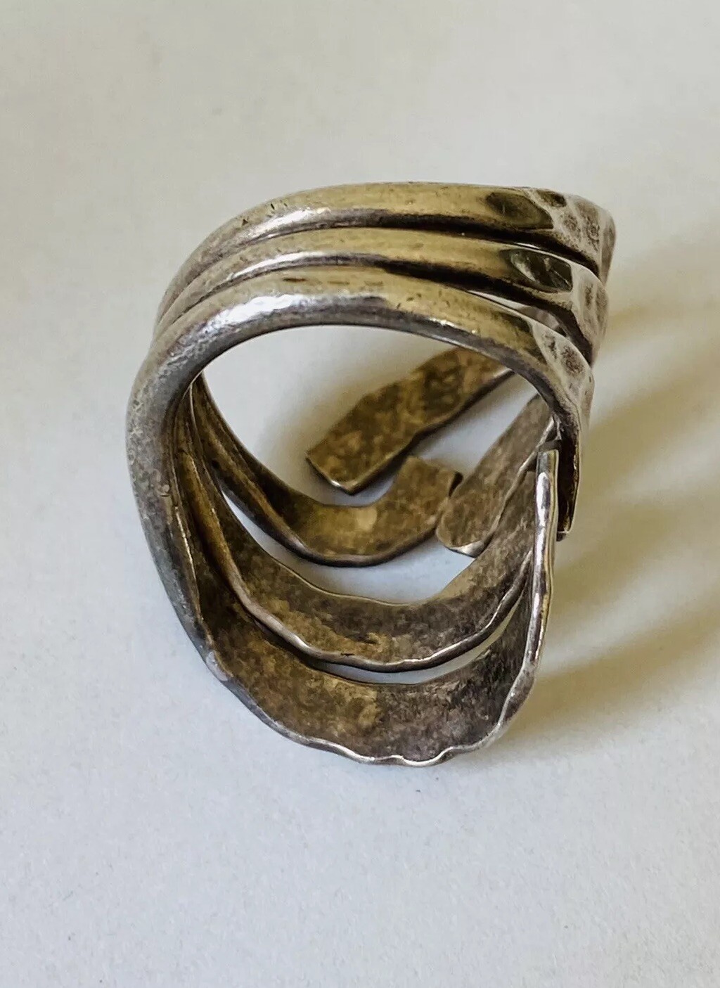 как выглядит Vintage Sterling Silver Hammered Modernist Swirl Wavy Ring Size 5 фото