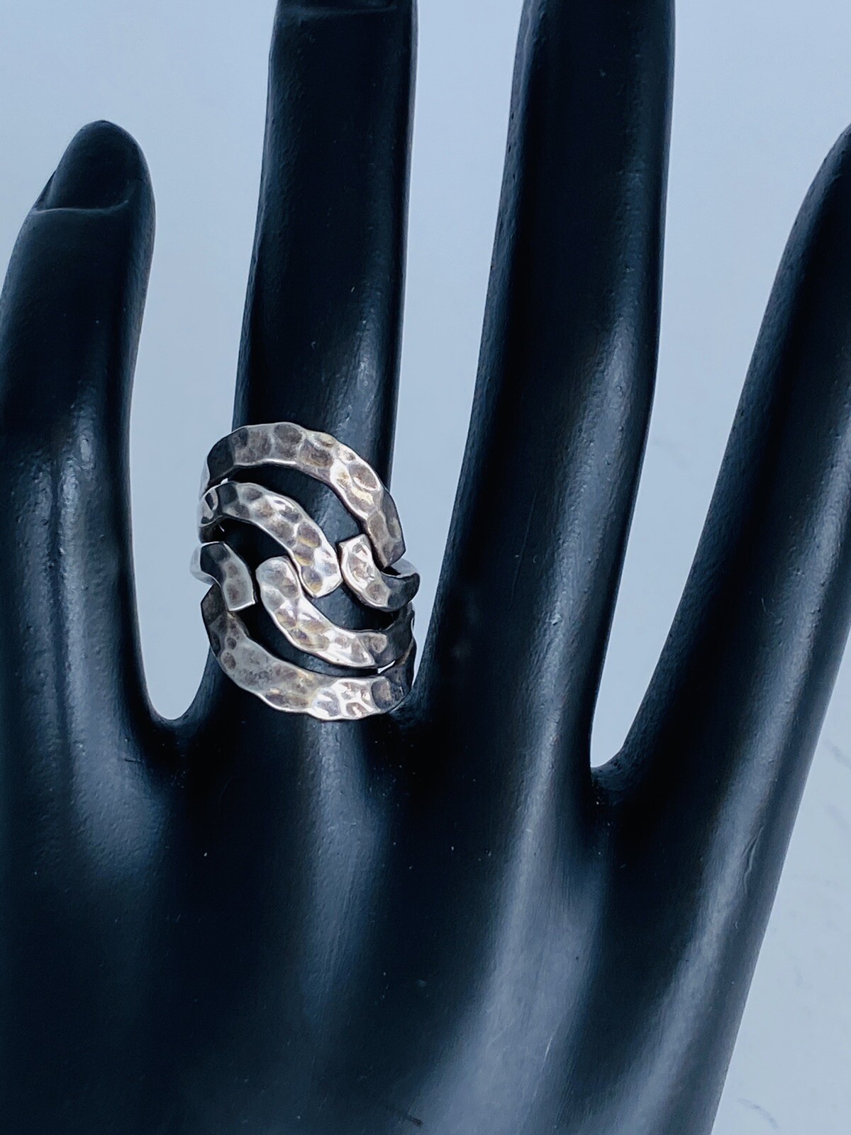 Vintage Sterling Silver Hammered Modernist Swirl Wavy Ring Size 5