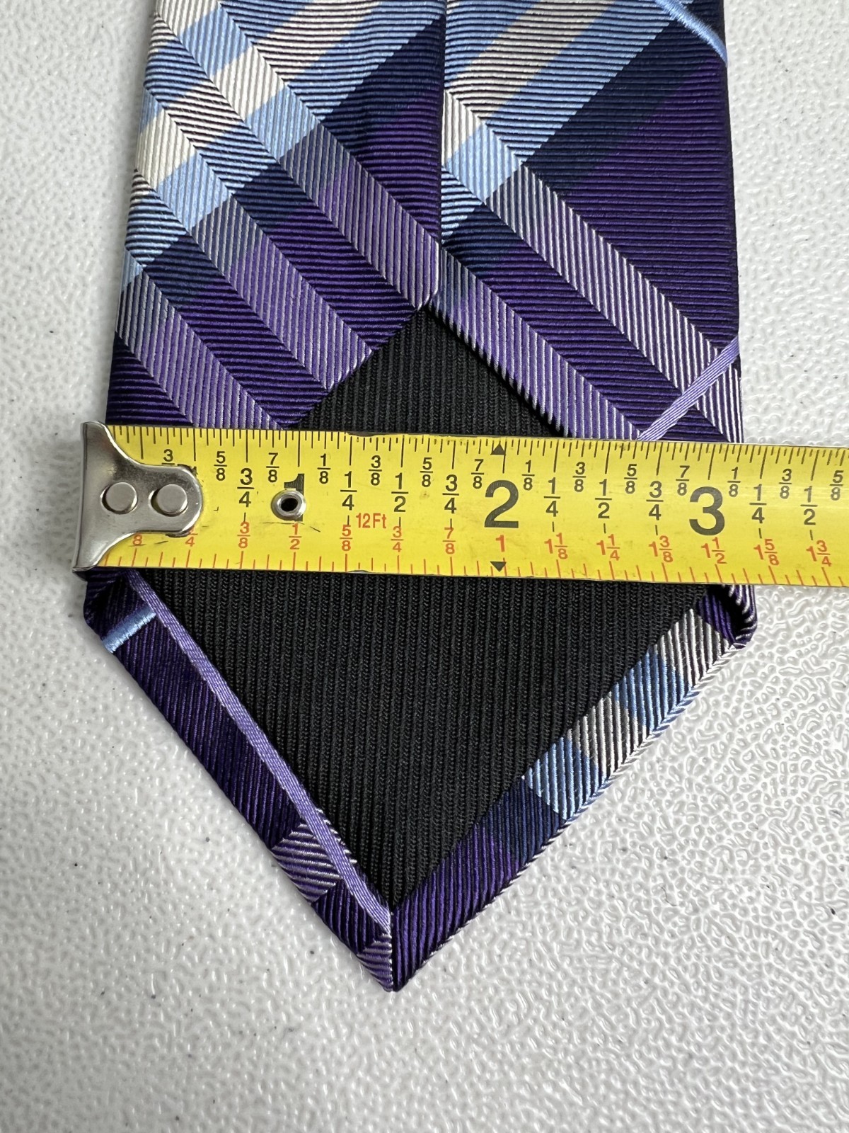 Geoffrey Beene Purple, Blue Plaid Pattern 100 Silk Handmade Tie NWOT